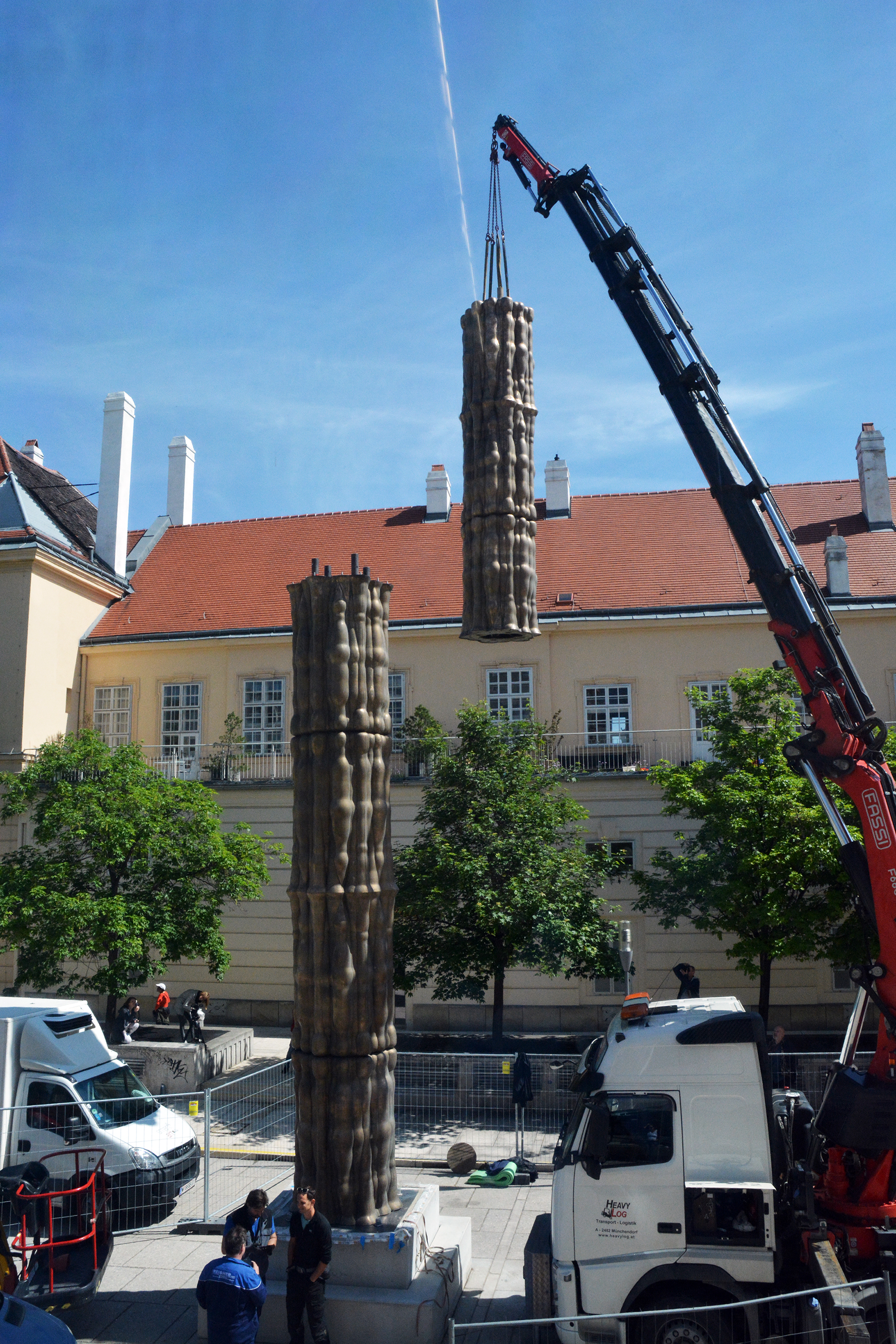 „Humanitassäule“ von Joannis Avramidis: 13 Meter hohe Skulptur im Haupthof des MQ aufgestellt