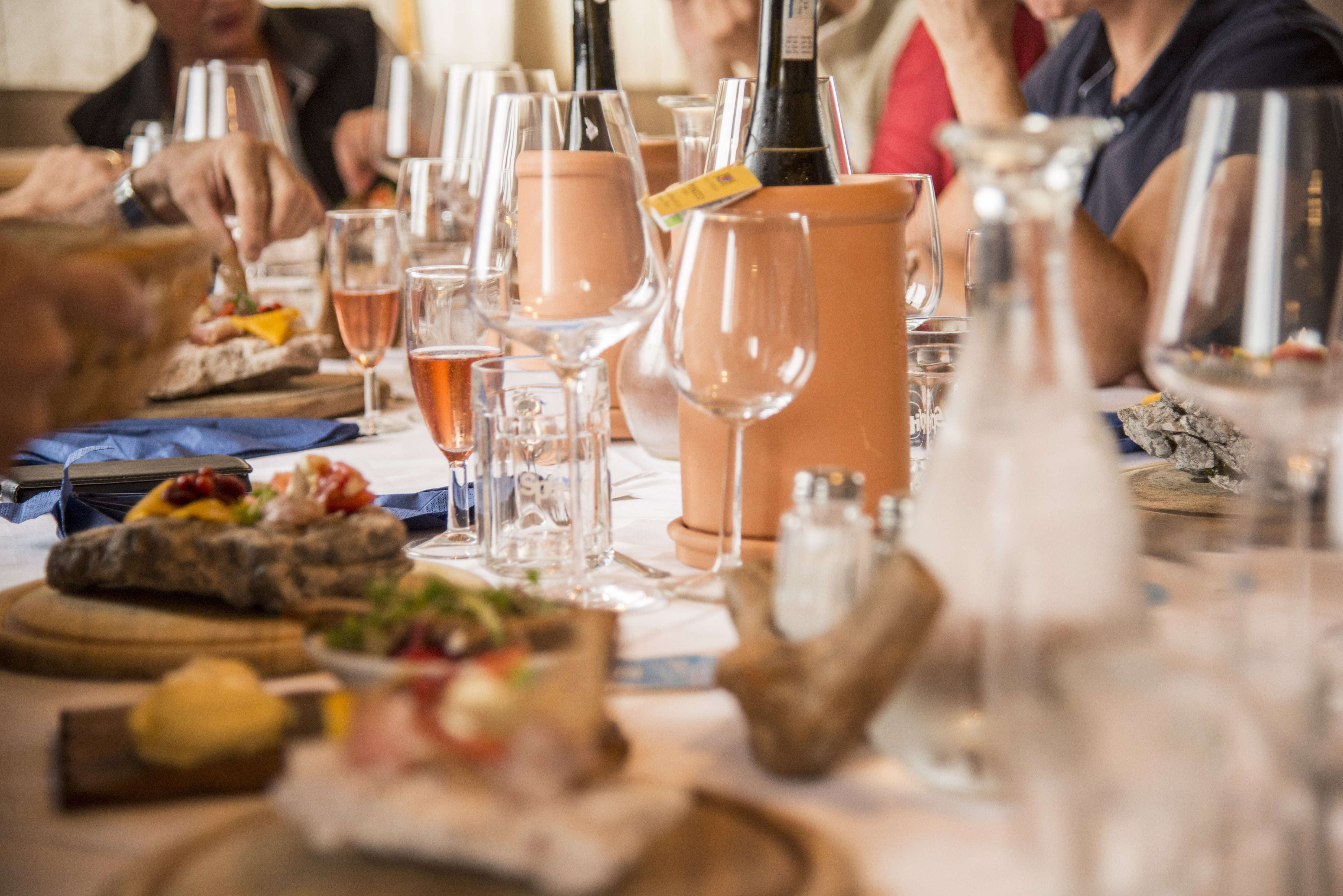 in der behaglichen Gaststube. Die passenden Weine stehen bereit,