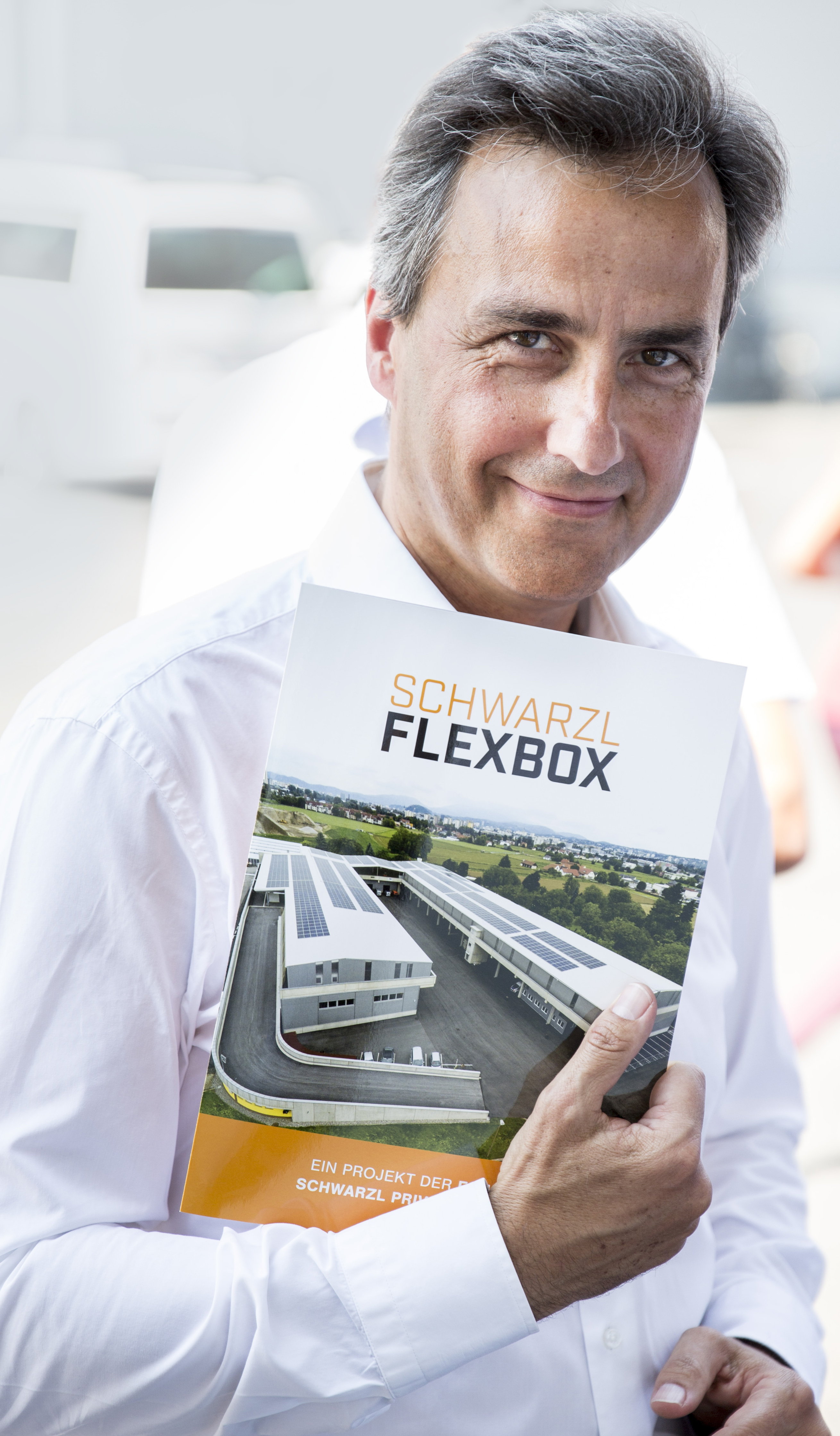 „Karl Schwarzl erkannte schon 2008, als er die Liegenschaft erwarb, die verkehrsstrategische Bedeutung der Lage. Heute ist der Standort der SCHWARL FLEXBOX in seiner zentralen, städtischen Lage durch den Grazer Südgürtel direkt an die Pyhrn-Adriatische Achse angebunden“