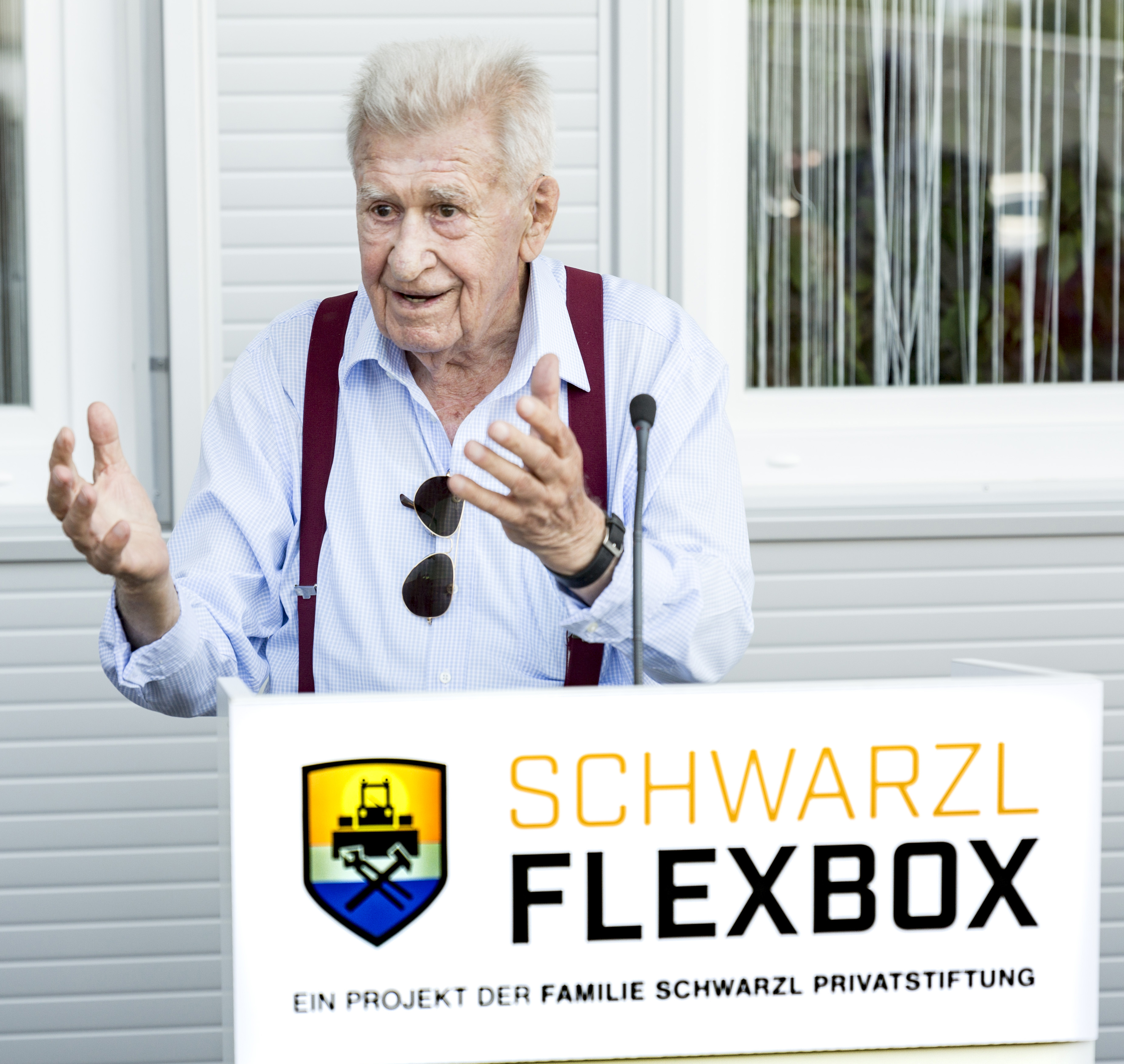 Die steirische Wirtschaft und der Wirtschaftsstandort Graz sind um eine unternehmerische Innovation reicher. Der Bauherr und „ewige Jungunternehmer“ Karl Schwarzl (89) lud zur Eröffnung der 10.000 Quadratmeter großen FLEXBOX-Halle am Grazer Südgürtel. In der Rekordzeit von zwöf Monaten mit höchster Energieeffizienz und Nachhaltigkeit erbaut, schafft die SCHWARZL FLEXBOX Platz für Lager- und Logistikflächen, darunter Kühlräume. Dank Strom-, Sanitär-, Telefon- und Internetanschlüssen ist das Powerprojekt auch für flexible Büros in Form von Containern perfekt geeignet und interessant.