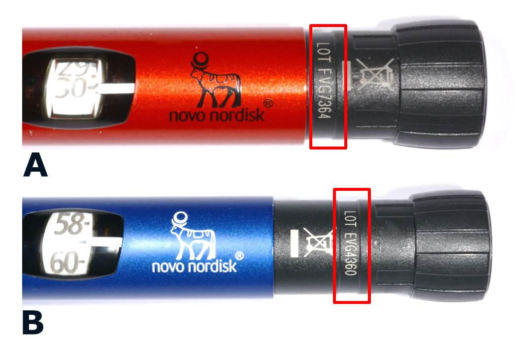 Abbildung 1 zeigt, wo Sie die Chargennummer auf dem NovoPen Echo®
