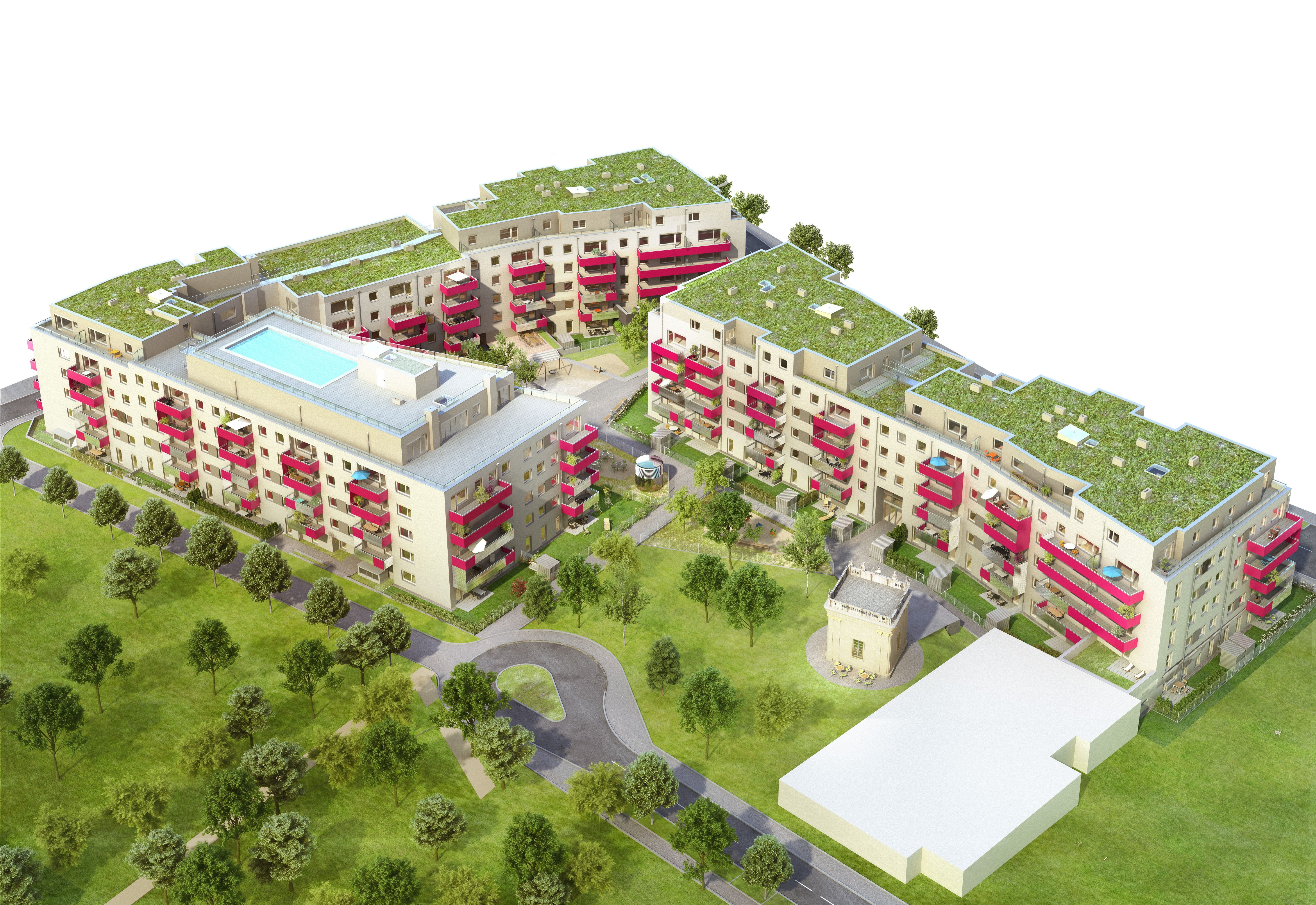 Die bezugsfertigen Wohnungen haben 1 bis 4 Zimmer und Größen zwischen 54 und 95 m² Wohnnutzfläche, Terrasse, Loggia oder Balkon. Zu den weiteren Ausstattungsdetails zählen unter anderem die Fußbodenheizung mittels biogener Gärgas-Fernwärme der Brauunion, der Niedrigenergiestandard, das Dachschwimmbad, der Fitnessraum und die Sauna, die allen zukünftigen Bewohnerinnen und Bewohnern ein besonderes Plus an Lebensqualität bietet.