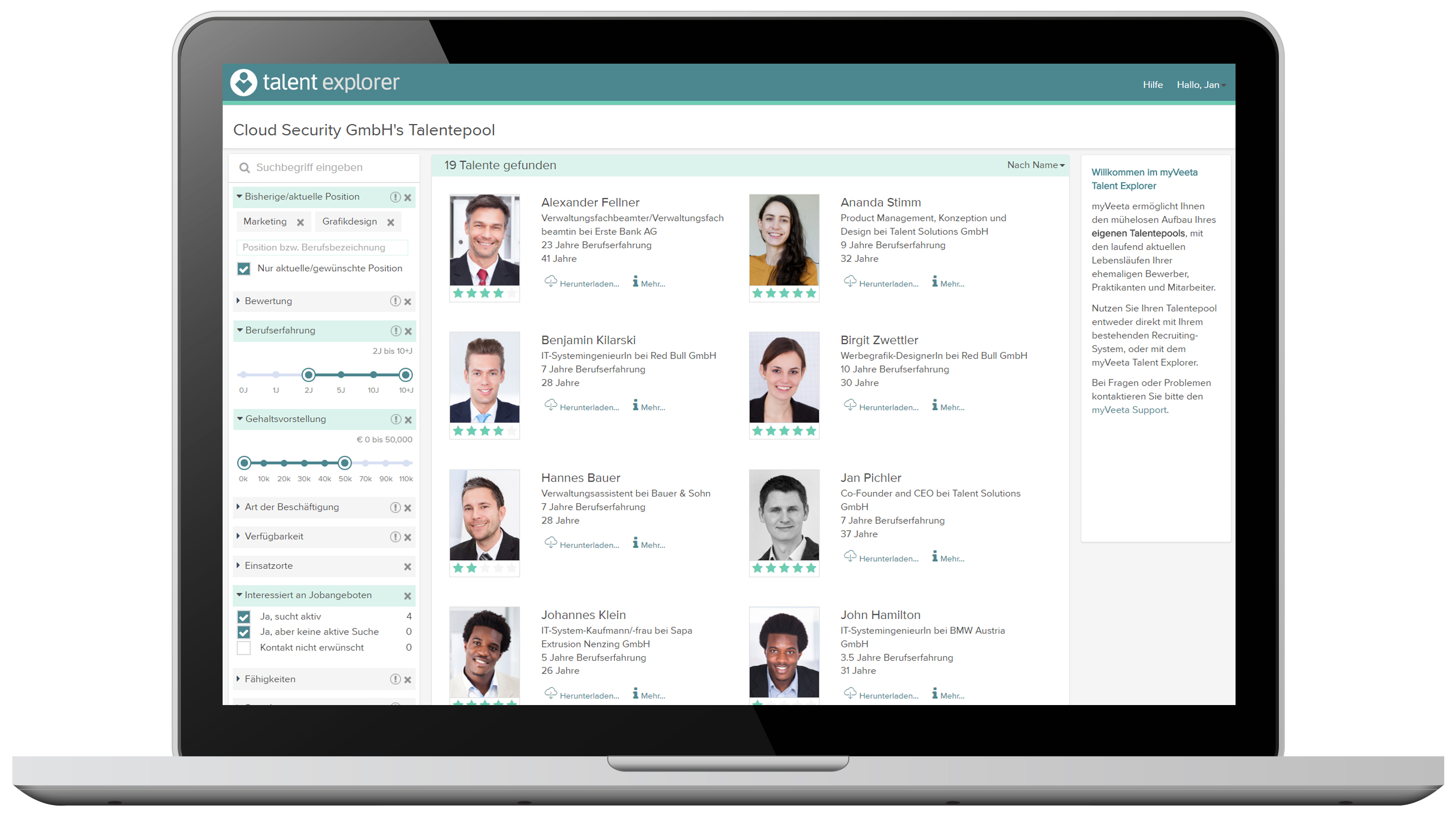 Qualifiziertes Personal ist für jedes Unternehmen erfolgsentscheidend. Die Suche nach geeigneten Mitarbeitern ist aber immer öfter ein langwieriger, kostenintensiver und aufwändiger Prozess. MyVeeta, ein Online-Service für Bewerber und Unternehmen, vereinfacht die Personalsuche indem es dort ansetzt, wo der Bewerbungsprozess meist endet: "Unternehmen müssen interessanten Bewerbern häufig eine Absage erteilen, wenn sie z. B. gerade keine passende Stelle haben. Sie möchten diese Kandidaten aber oft im Auge behalten. Umgekehrt gibt es unzählige qualifizierte Jobsuchende, die initiativ ein Unternehmen kontaktieren, deren Lebenslauf aber in irgendeiner Schublade endet. Mit myVeeta geben wir Bewerbern und Unternehmen die Möglichkeit, sehr einfach und langfristig über ein Talentenetzwerk in Kontakt zu bleiben und dann bei passender Gelegenheit zueinander zu finden", erklärt Jan Pichler, Geschäftsführer von Talent Solutions.