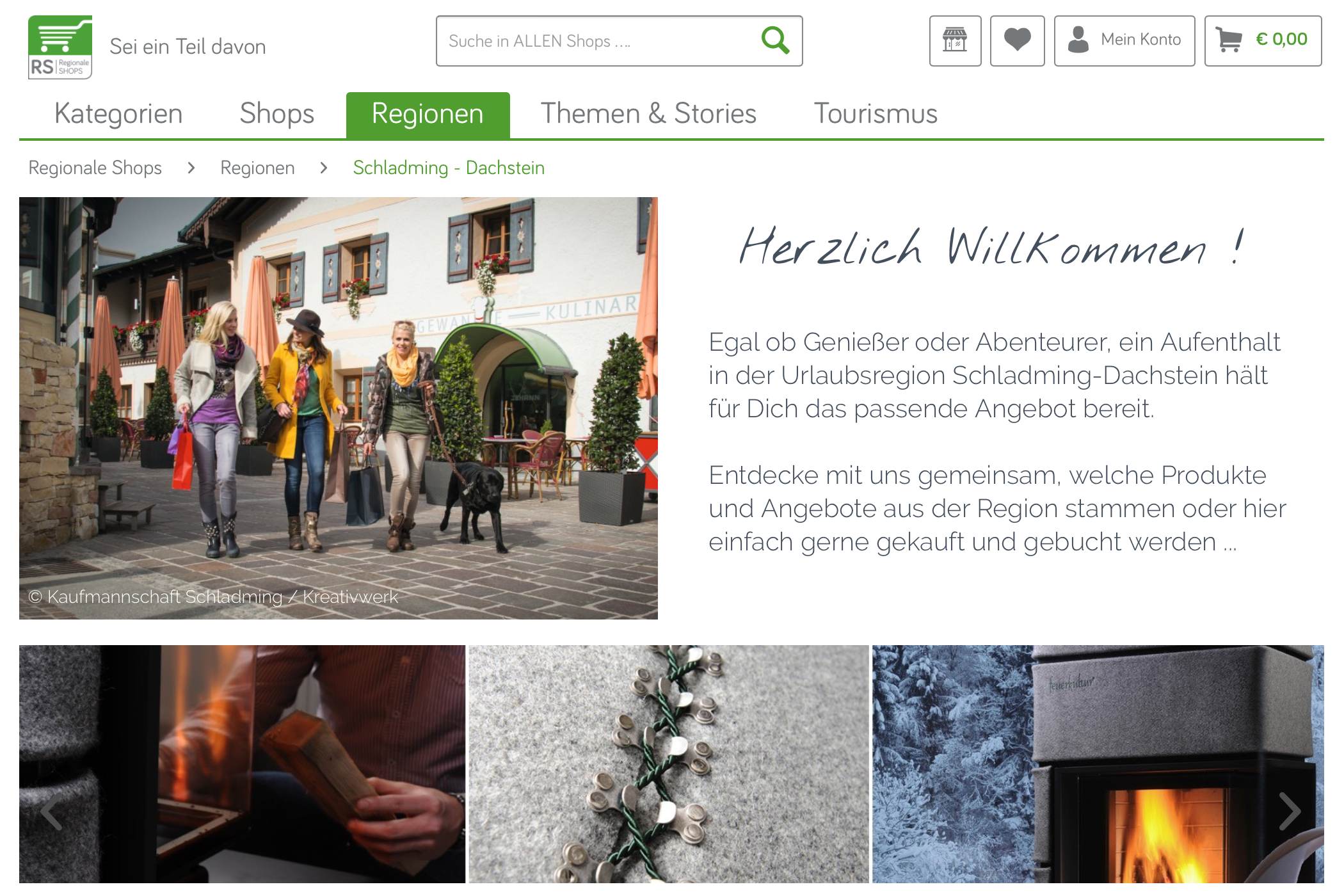 Die RS Regionale Shops E-Commerce GmbH mit Sitz in Gröbming (Ennstal, Steiermark) betreibt seit 21. Juli 2016 den Online-Marktplatz www.regionale-shops.at. Auf dieser neuen Plattform können regional tätige Betriebe aus den Bereichen Handel, Handwerk, Landwirtschaft und Tourismus einen eigenen Onlineshop für sich mieten. Als konsequente Weiterentwicklung werden die Shops und deren Artikel am Marktplatz nun auch in Regionen gegliedert und in innovativen Einkaufswelten präsentiert. Damit wird Konsumenten jetzt auch online ein regionales Einkaufserlebnis geboten.