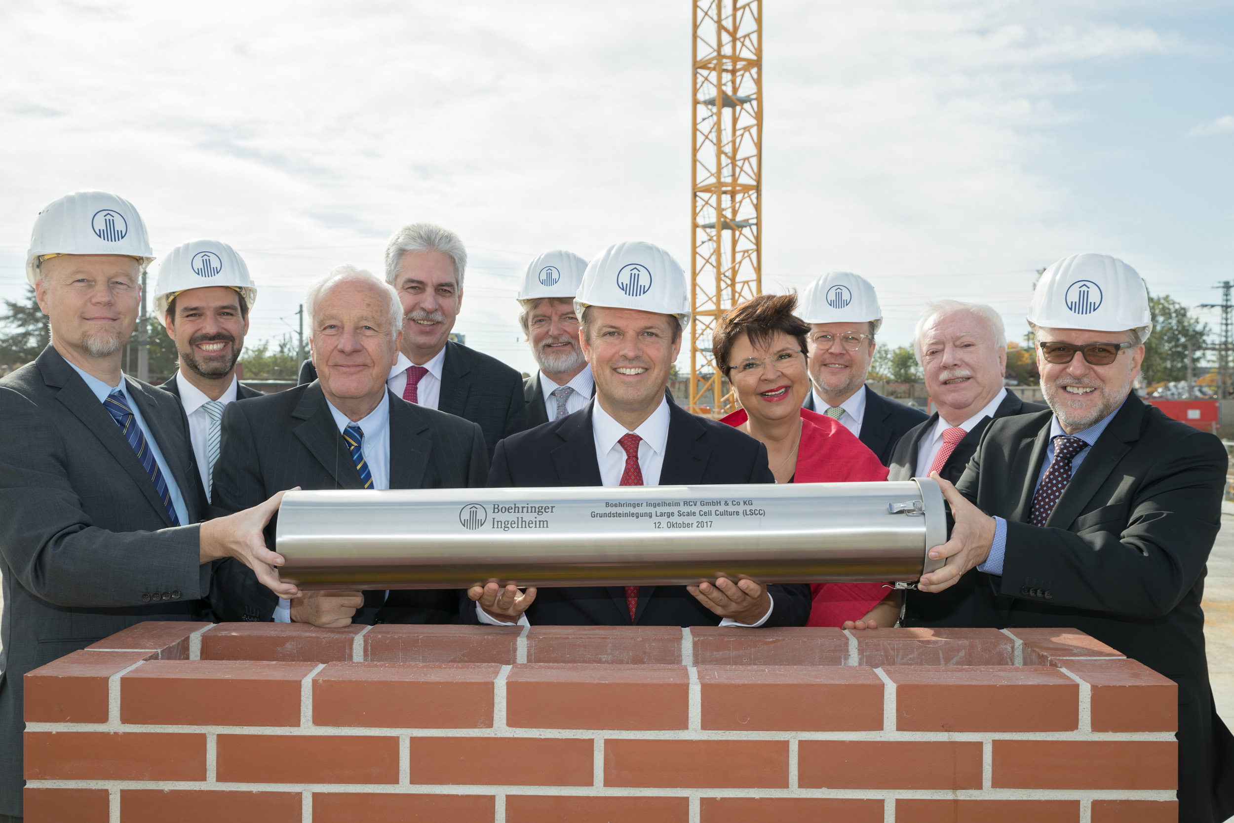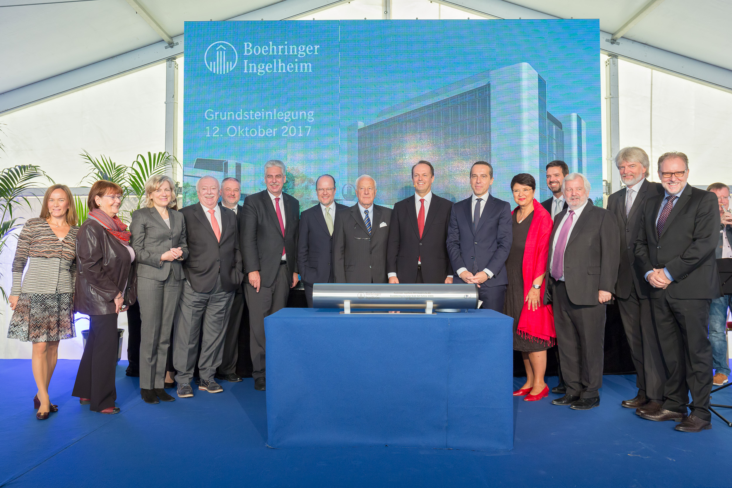 Nach einer kurzen Talk-Runde versenkten einige Teilnehmer eine Zeitkapsel mit diversen Gegenständen. Diese umfassten unter anderem ein Gefäß mit Zellen, das erste biopharmazeutische Produkt, das bei Boehringer Ingelheim hergestellt wurde, aber auch Baupläne, Münzen oder ein Stadtsiegel als Symbol für die Unterstützung der Stadt Wien.