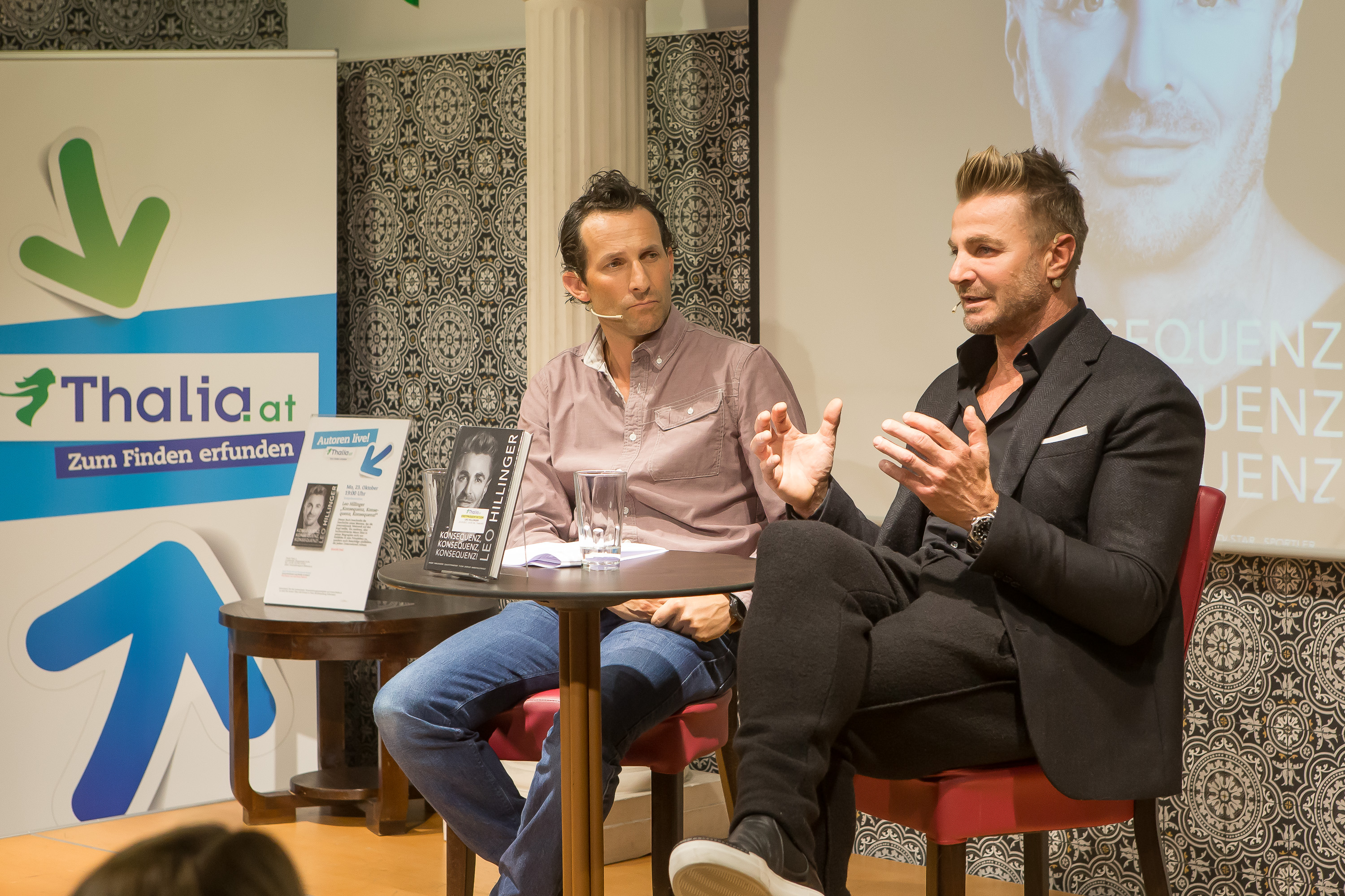 „Mit vielem habe ich gerechnet – aber damit nun auch wieder nicht…“ Leo Hillinger, Weinbauer, TV-Star, Marketing-Genie, der eigentlich nie um einen guten und klugen Spruch verlegen ist, war gestern, Montag (23.10.17) wahrlich verblüfft. Denn zur Buchpräsentation seiner Autobiographie „Konsequenz, Konsequenz, Konsequenz!“, zu der er zusammen mit der Buchhandlung Thalia Wien Mitte und dem egoth-Verlag geladen hatte, stellten sich dermaßen viele Gäste ein, dass der Rahmen mehr als gesprengt wurde.