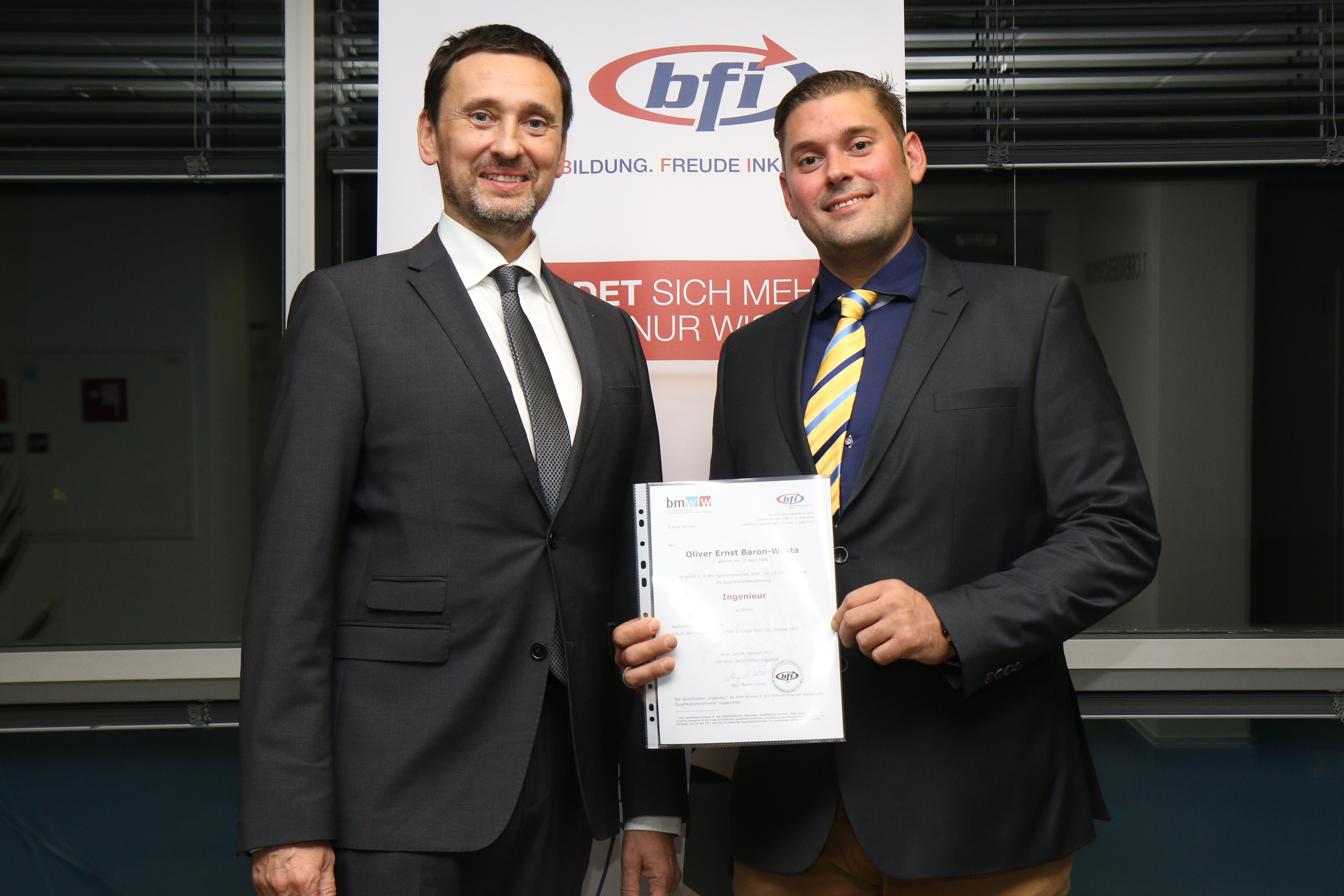 der neue Ingenieur-Titel an die ersten beiden Wiener Absolventen im