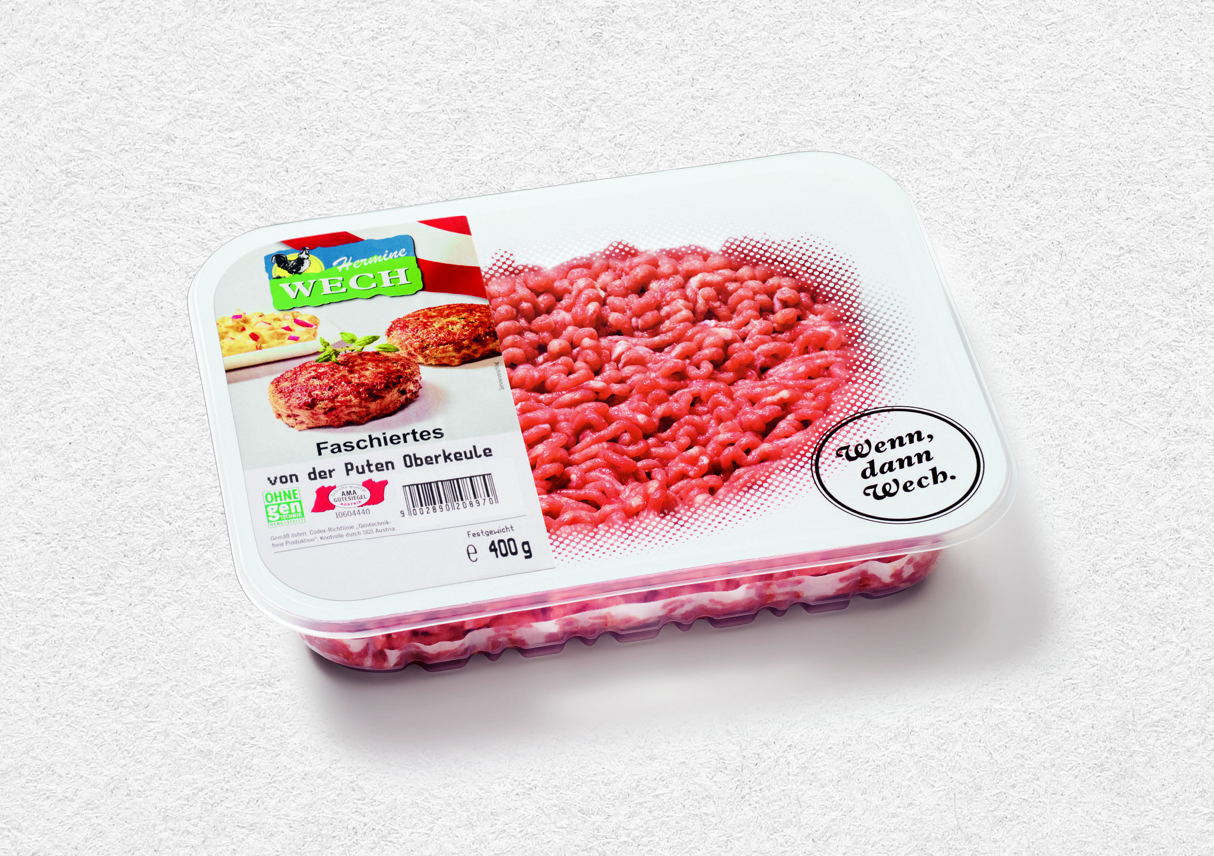 Bei Merkur gibt es derzeit in ganz Österreich frisches Faschiertes von WECH, sowohl von der Putenoberkeule als auch vom Hendl und Bio-Hendl. Bei Spar findet man von Pöttelsdorfer Faschiertes von der Putenoberkeule.