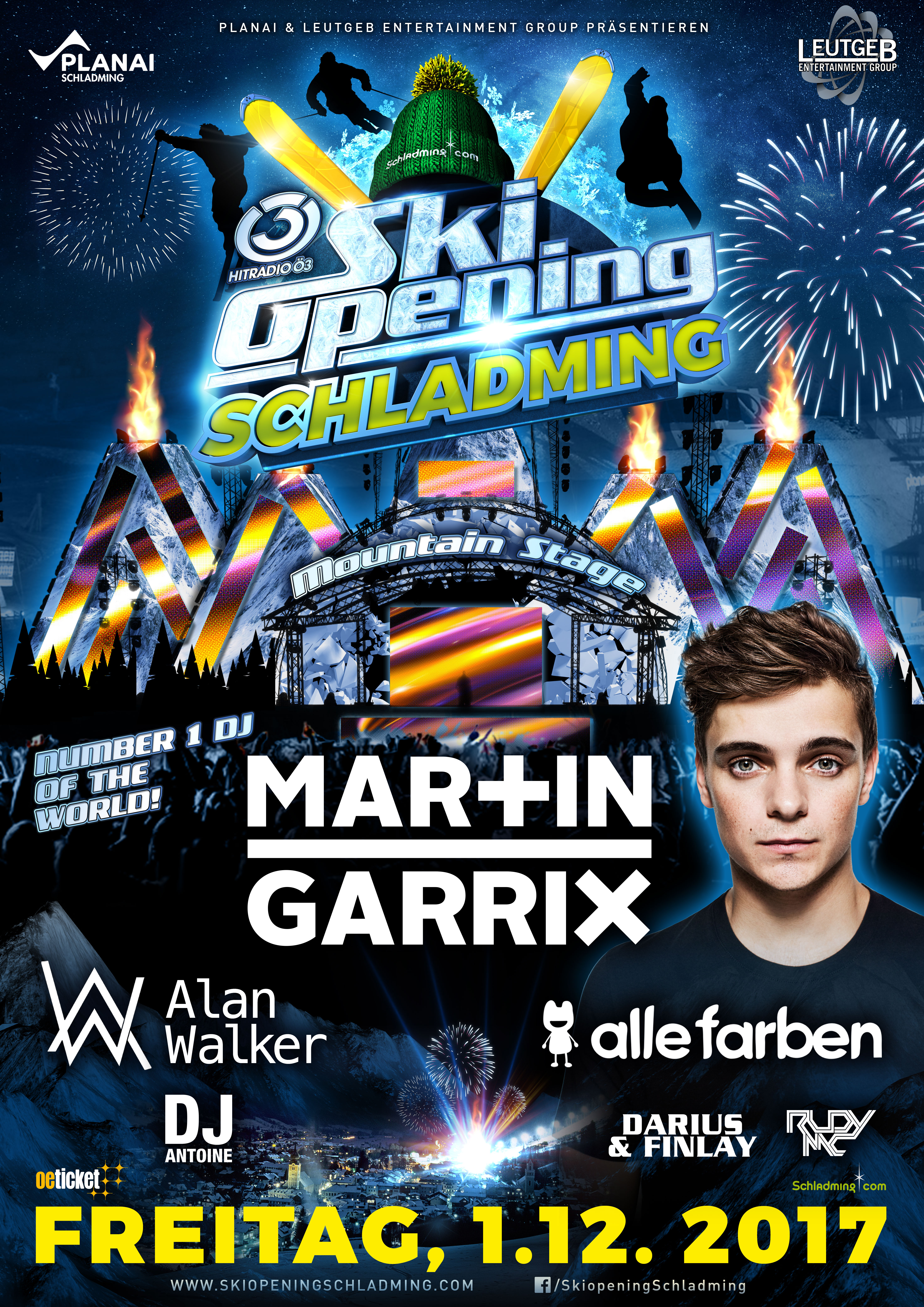 Der Countdown bis zum größten und spektakulärsten Ski Opening in Österreich läuft und im Planai-Stadion gehen die Vorbereitungsarbeiten zügig voran: Denn in genau einer Woche - am 1. Dezember 2017 - ist es endlich soweit und MARTIN GARRIX wird gemeinsam mit ALAN WALKER, ALLE FARBEN, DJ ANTOINE, DARIUS & FINLAY und RUDY MC das Planai-Stadion in den größten Dance-Floor der Steiermark verwandeln.