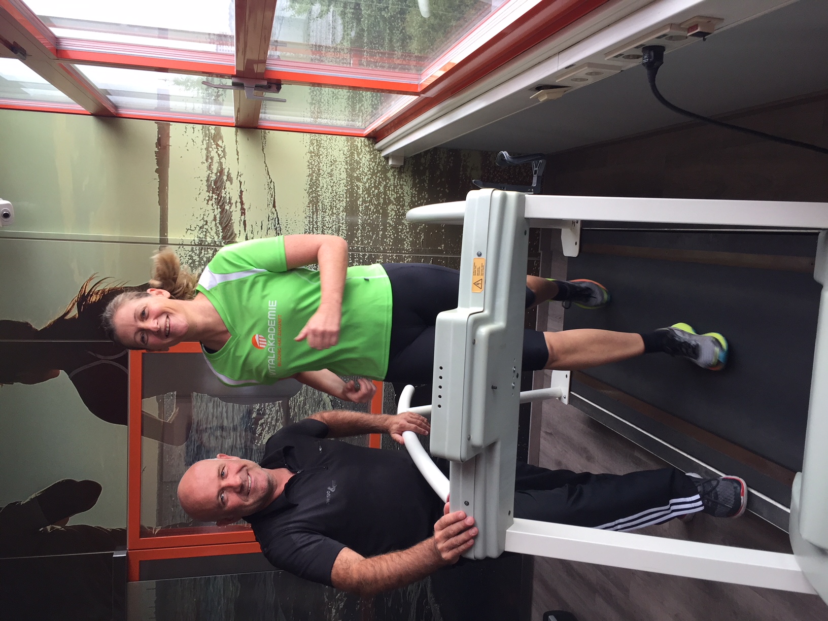 Nachdem sich die Gruppe formiert hatte, kam die Bestandsaufnahme, die Zieldefinition und das „Loslegen“. Zur Bestandsaufnahme gehörten eine genaue Messung der Körperzusammensetzung mithilfe der BIA (Bioimpedanzanalyse), ein Laufband-Conconi-Leistungstest und eine Fußanalyse mit entsprechender Schuhempfehlung. Die Neu-, bzw. Wiedereinsteiger haben sich zudem ärztlich durchchecken lassen. Mit all diesen Informationen ausgestattet, wurden individuelle Trainings- und Ernährungspläne gestaltet. „Außerdem hat jetzt jeder von uns eine realistischere Selbsteinschätzung, was eine mögliche Finisher-Zeit für den Halbmarathon betrifft. Wenn unsere ersten Zielformulierungen noch eher Wunschvorstellungen waren, so sind es jetzt konkrete, erreichbare Ziele. Das motiviert gewaltig!“, so Karin Musch.