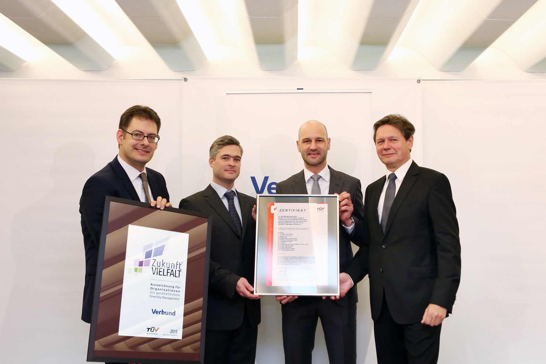 Seit mittlerweile zehn Jahren kann ganzheitlichem und strategischen Diversity Management durch eine eigene Systemzertifizierung des TÜV AUSTRIA Ausdruck verliehen werden. Auch VERBUND, Österreichs führendes Stromunternehmen und einer der größten Wasserkrafterzeuger Eurpoas, ließ sein Vielfaltsmanagementsystem nach dem international anerkannten Standard zertifizieren. Das TÜV AUSTRIA Diversity Management-Zertifikat bestätigt dem Energieanbieter von unabhängiger Stelle, dass das Unternehmen dafür sorgt, den Bedürfnissen seiner Mitarbeiter Beachtung zu schenken und vielfältige Unternehmenswerte in den Prozessen zu verankern.