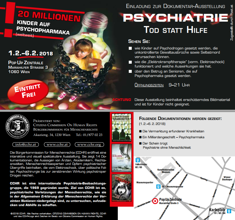 Sonderausstellung „Psychiatrie – Tod statt Hilfe“ in Wien, 1.–6.Februar täglich von 9:00 - 21:00