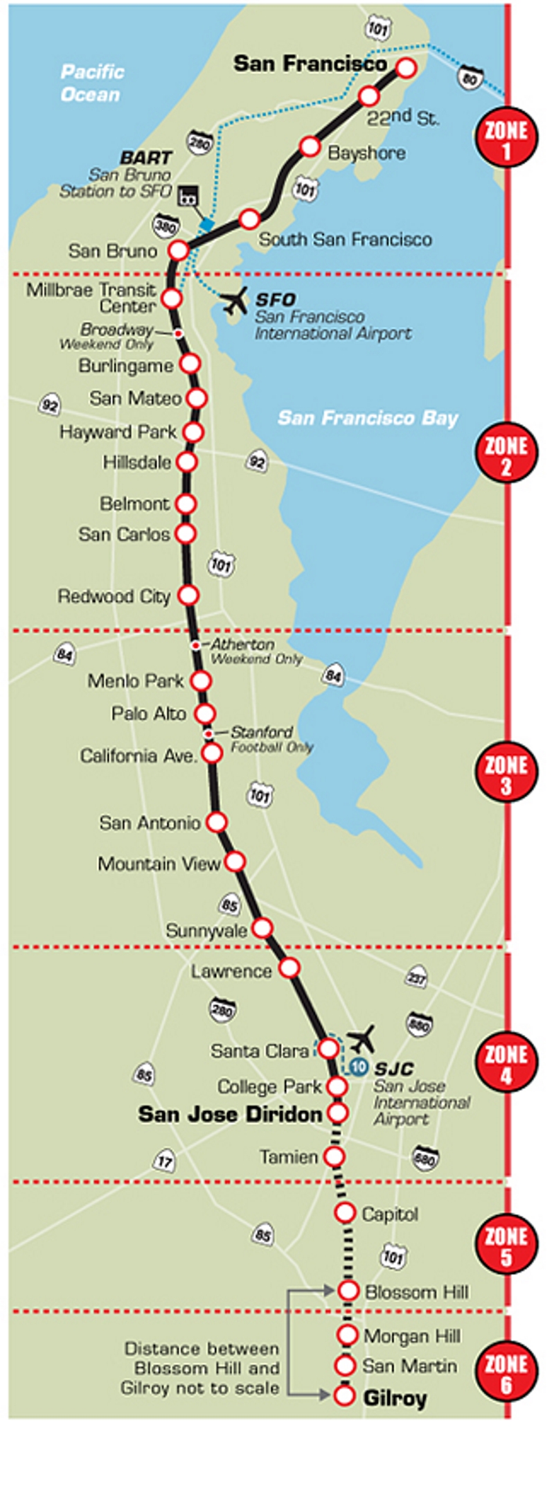 Das Silicon Valley, eine Fläche von ca. 5.000 km2 und mit rund 3 Mio. Einwohnern, gilt als eines der dynamischsten Innovationszentren weltweit, wo die Schnittstellen zwischen Wissenschaft und Wirtschaft eng beieinander liegen. Großkonzerne wie Google (Mountain View), Apple (Cupertino), Facebook (Menlo Park), Tesla (Palo Alto), Uber (San Francisco), Ebay (San José), McAfee (Santa Clara) und Oracle (Redwood Shores) haben ihr Hauptquartier im Silicon Valley, sodass Entwickler, Ingenieure und Designer tagtäglich auf gute und schnelle Zugverbindungen angewiesen sind, um zu und von ihrem Arbeitsplatz zu pendeln.