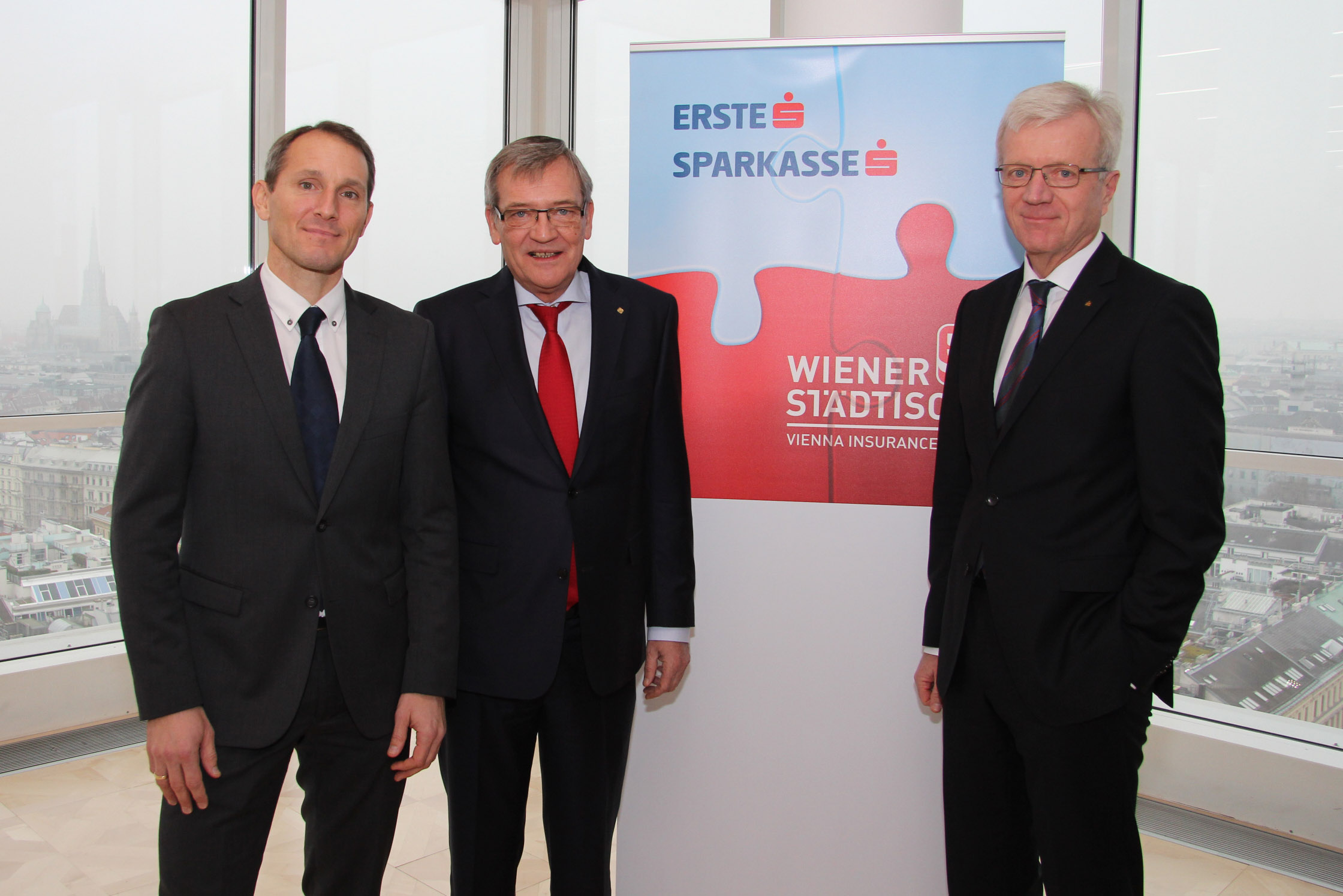 Die Wiener Städtische Versicherung, Erste Bank und Sparkassen intensivieren ihre langjährige Partnerschaft. Im Rahmen der Kooperation wird für Bankkunden der Zugang zu Sach- und Krankenversicherungen ausgeweitet und mit neuen Produkten speziell für den Bankvertrieb ausgebaut. Bei Lebensversicherungen wird man nach der Fusion zwischen der Wiener Städtischen und s Versicherung gemeinsam bereits die Marktführerschaft übernehmen. „Vergleiche mit europäischen Märkten zeigen, dass bereits bis zu zehn Prozent im Nicht-Leben-Geschäft via Banken vermittelt wird. Diese Marke peilen wir als Wiener Städtische gemeinsam mit unseren Partnern Erste Bank und Sparkassen ebenfalls an“, erklärt Robert Lasshofer, Generaldirektor der Wiener Städtischen Versicherung.