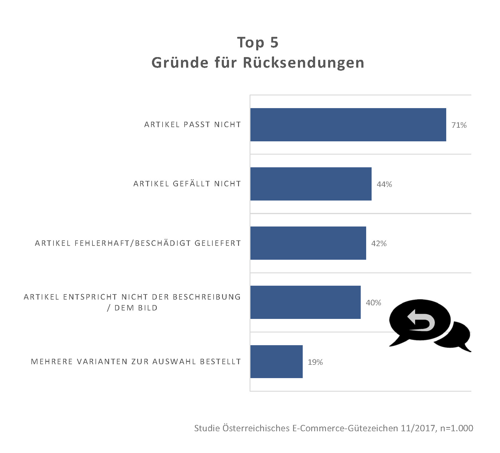 - Top 3 Rücksendegründe: Produkt passt nicht, gefällt nicht oder ist fehlerhaft