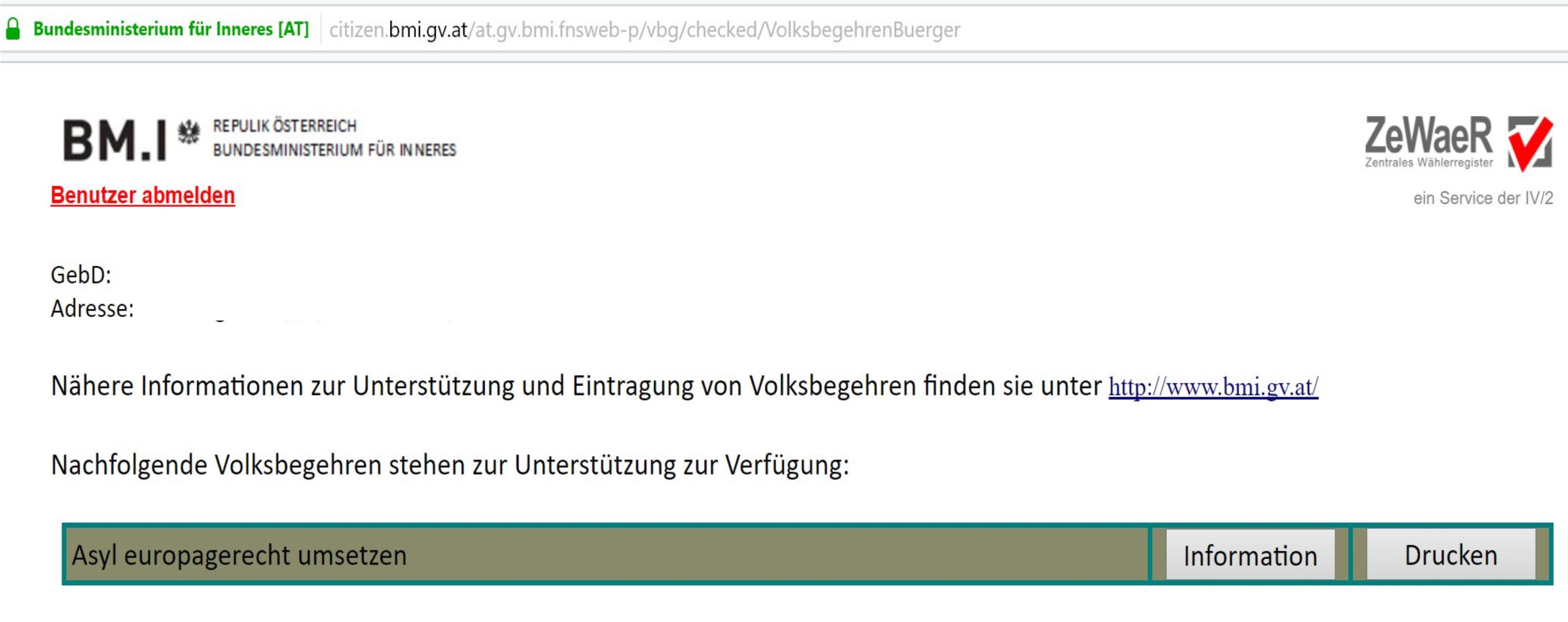 Unter diesem Link kann das Asyl-Volksbegehren ab sofort unterstützt werden: