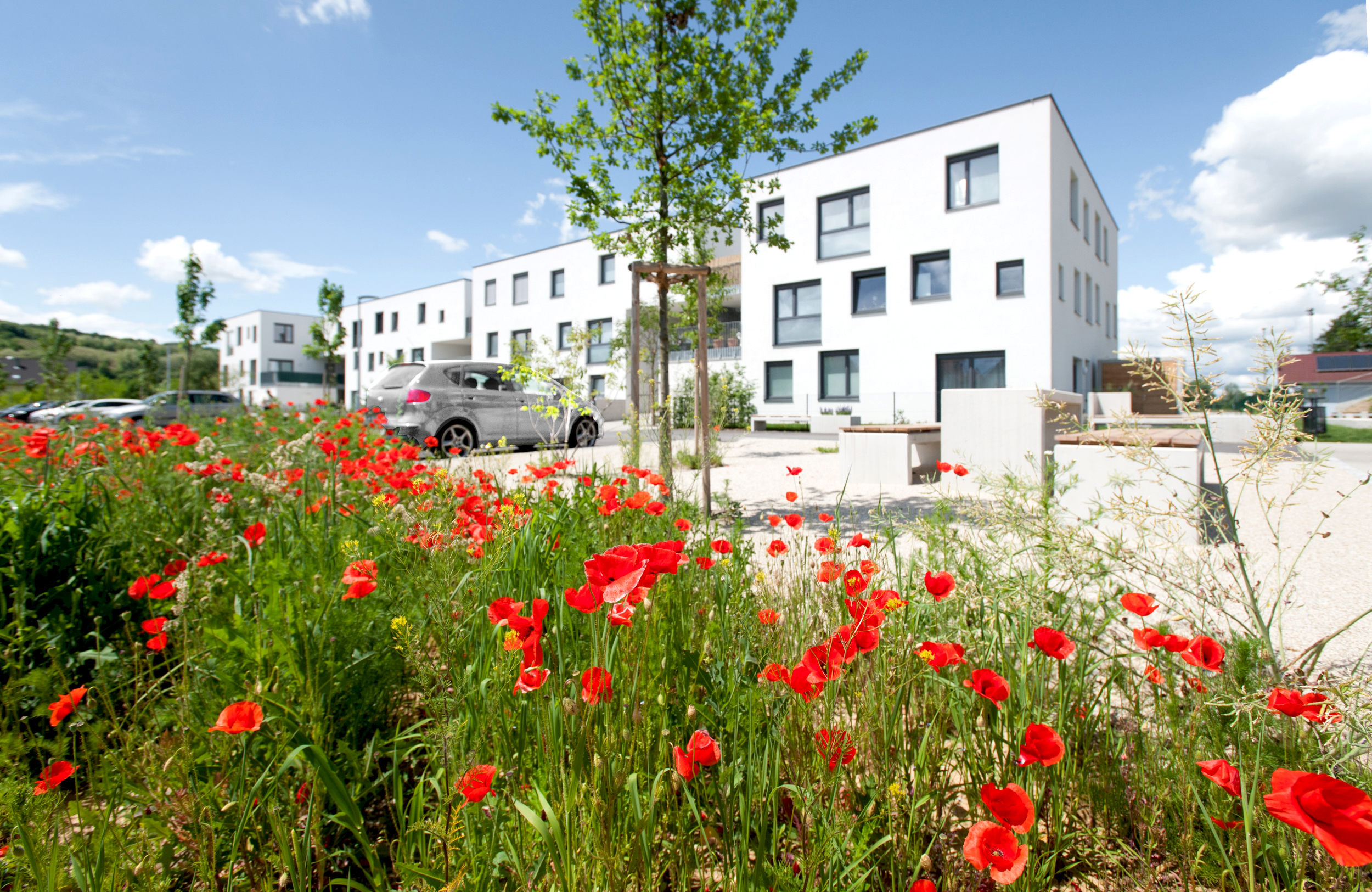 In der Kategorie ‚Geschoßwohnbau‘ ging das Projekt am Badweg 26 in der Fischer-von-Erlach-Gemeinde Großweikersdorf im Bezirk Tulln als Sieger hervor. Geplant von der Simon und Stütz Architekten ZT GmbH, Wien, wurde die Wohnhausanlage in zwei Abschnitten von der Schöneren Zukunft umgesetzt. Es sind insgesamt 42 Wohneinheiten entstanden.