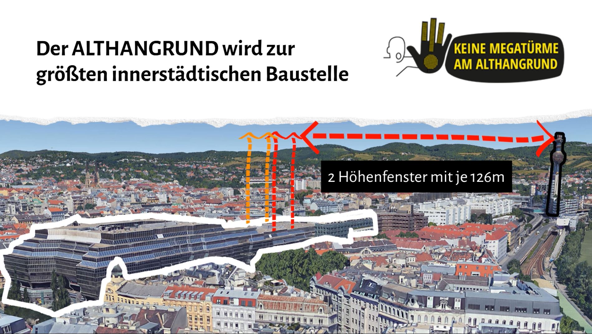 Im innerstädtisch gelegenen Planungsgebiet Althangrund stehen 2 Höhenfenster mit je 126m, die sich am Schlot der Müllverbrennungsanlage Spittelau orientieren und damit fast doppelt so hoch wie das Heumarkt-Projekt sind, im Fadenkreuz der Kritik.