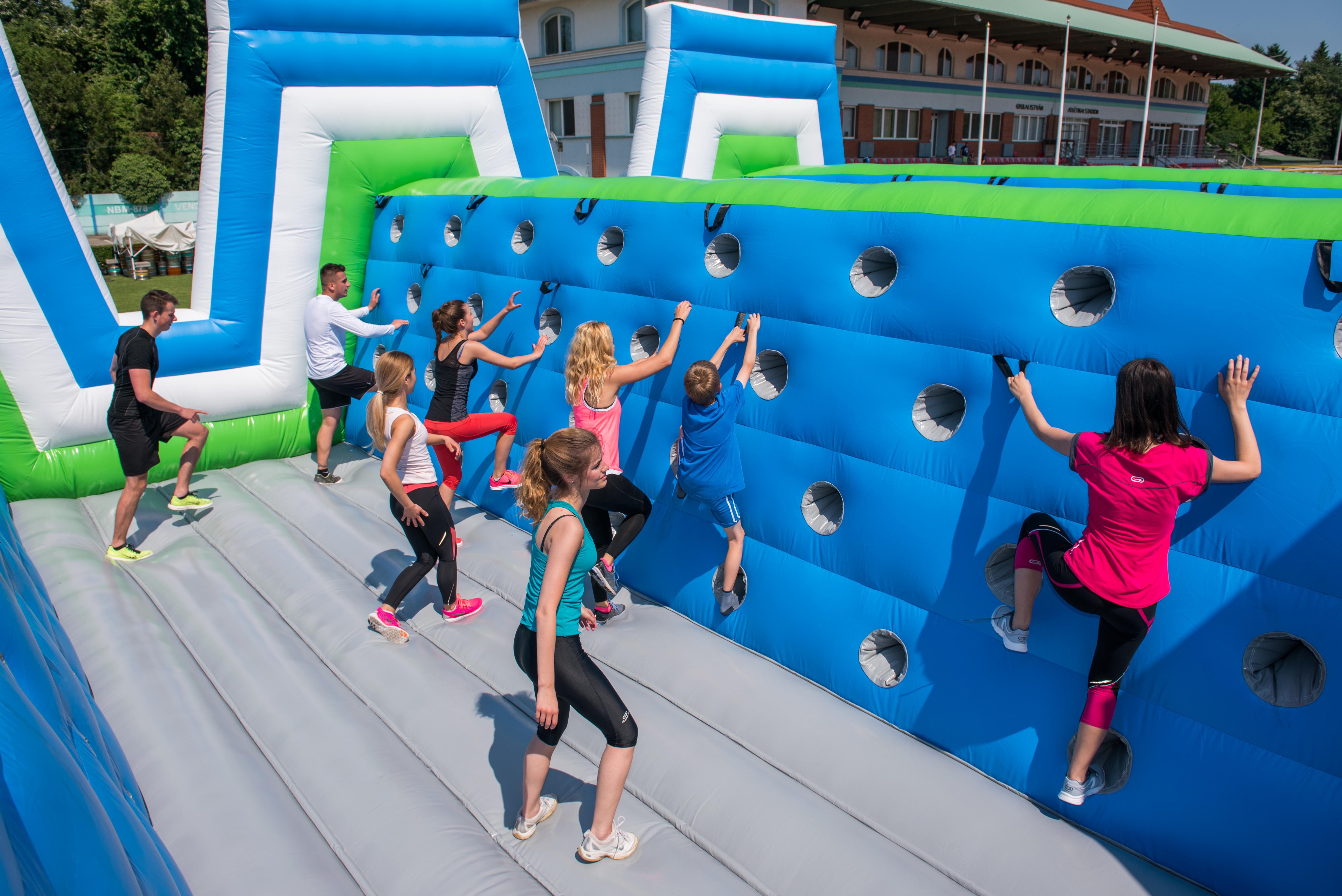 Sich einmal wieder wie ein Kind fühlen, ist das Ziel von Crazy5K. Auf fünf Kilometern werden zehn aufblasbare Hindernisse, darunter große Hüpfburgen, Tunnel und Labyrinthe überwunden.