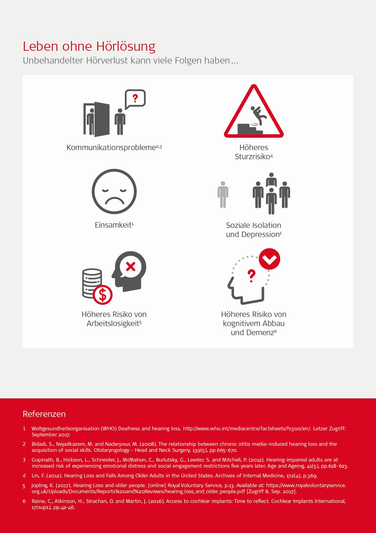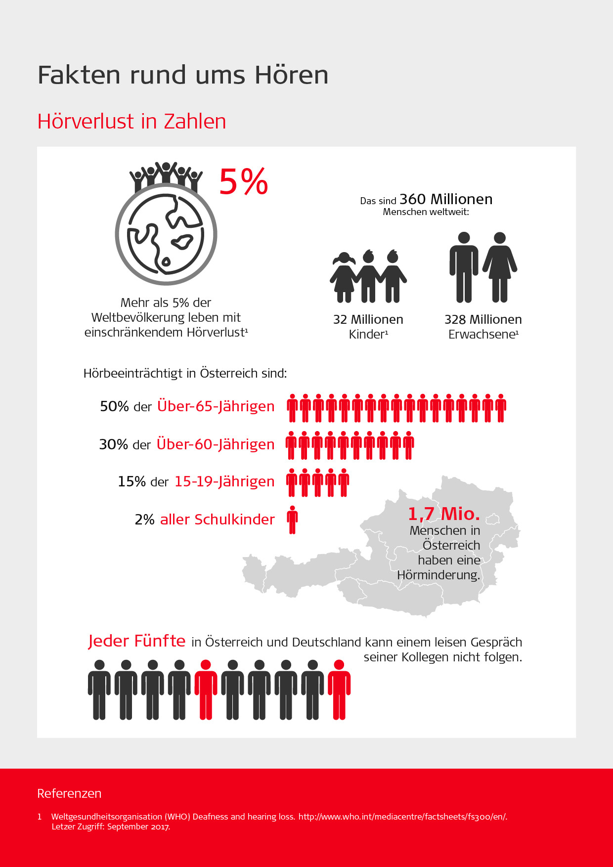 In Österreich sind Schätzungen zufolge ein bis zwei Prozent der Schulkinder hörbeeinträchtigt, bei den 15- bis 19-Jährigen sind es 15 Prozent, bei den Über-60-Jährigen 30 und bei den Über-65-Jährigen 50 Prozent. Wer schlecht hört, zieht sich über kurz oder lang zurück; es kommt zu Isolation und Einsamkeit. Wissenschaftliche Untersuchungen belegen darüber hinaus das erhöhte Risiko für Demenz und Depression.