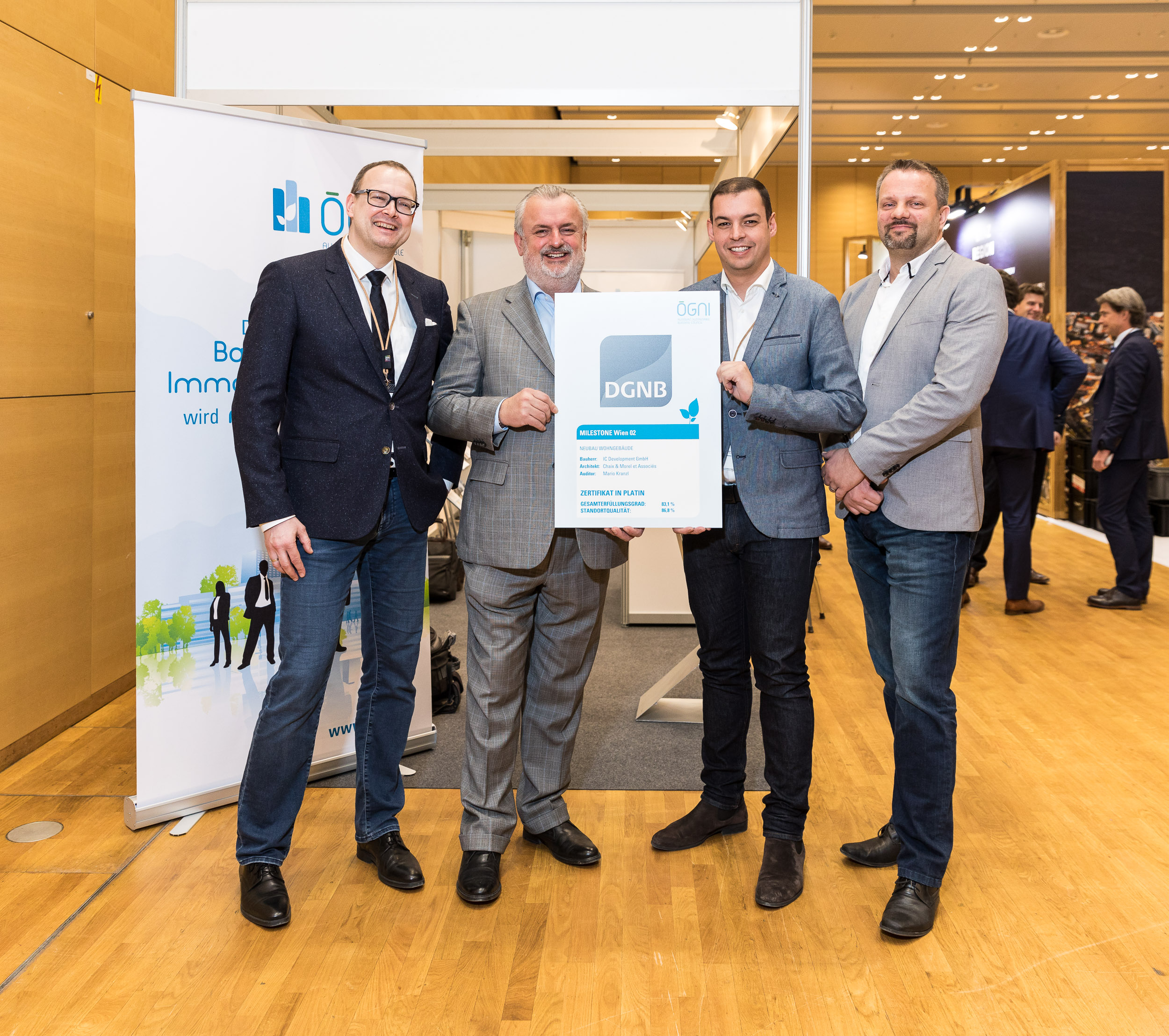 Im Rahmen der Urban Future Global Conference wurden das Büroprojekt DENK DREI und MILESTONE Vienna Campus mit der ÖGNI-Platin-Zertifizierung ausgezeichnet. „Für uns ist diese Zertifizierung wesentlich, da wir mit dem VIERTEL ZWEI einen Vorzeigestadtteil in Wien geschaffen haben“, sagt Sabine Müller, Geschäftsführerin der IC Development. „Städte beeinflussen die Art der Menschen, sich zu bewegen, zu verhalten und zu fühlen. Unsere Vision im VIERTEL ZWEI ist, mit unseren Ideen von Wohnen, Arbeiten und Zusammenleben das Stadtbild zu prägen und dabei Lebensraum zu schaffen, der begeistert.“