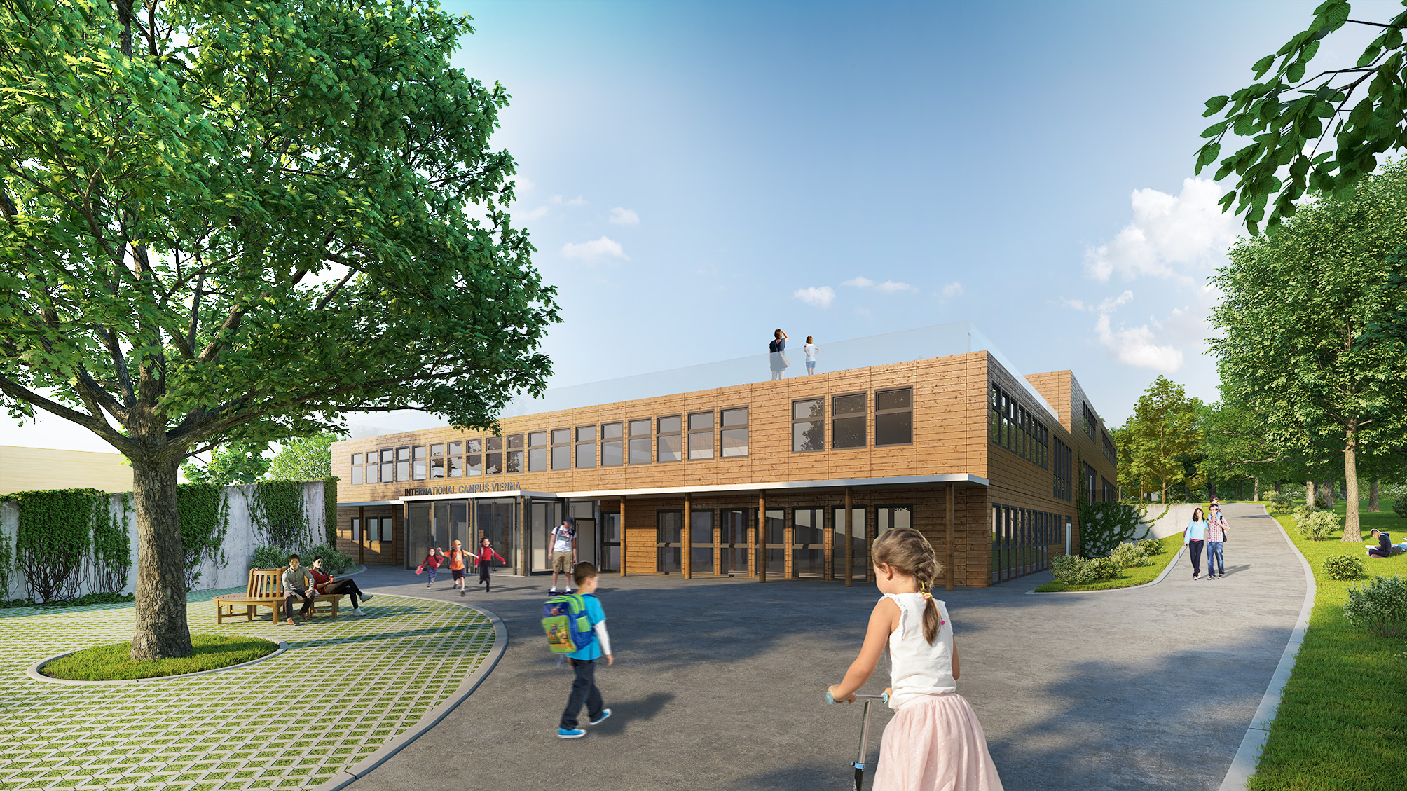 Der neue Campus erfüllt auch architektonisch höchste Maßstäbe. Mit einer Gesamtfläche von 18.000m2 bietet der Campus, gelegen in der Stadt und doch im Grünen, vielfältige Möglichkeiten für draußen und drinnen. Der Campus wurde von den Architekten Achtsnit & Achtsnit geplant und wird von der Lukas Lang Building Technologies GmbH umgesetzt. Aufgrund der speziellen Holzsteckbauweise lassen sich in kurzer Vorfertigungs- und Bauzeit, Gebäude nach den eigenen Bedürfnissen gestalten. Der Standort wurde nicht nur optimal für die Erfordernisse der Kinder und Jugendlichen entworfen, sondern auch in Hinblick auf ökologische Nachhaltigkeit. Die Fertigstellung soll noch dieses Jahr im Herbst erfolgen. Eigentümer des Grundstückes ist die LSE Liegenschaftsstrukturentwicklungs GmbH. Mitfinanziert wird das Projekt durch namhafte Firmen und private Investoren. Der ICV setzt auf einen offenen, transparenten Dialog mit allen Stakeholdern, insbesondere der Stadt Wien und politischen Entscheidungsträgern, um den Standortwechsel erfolgreich zu bewältigen.