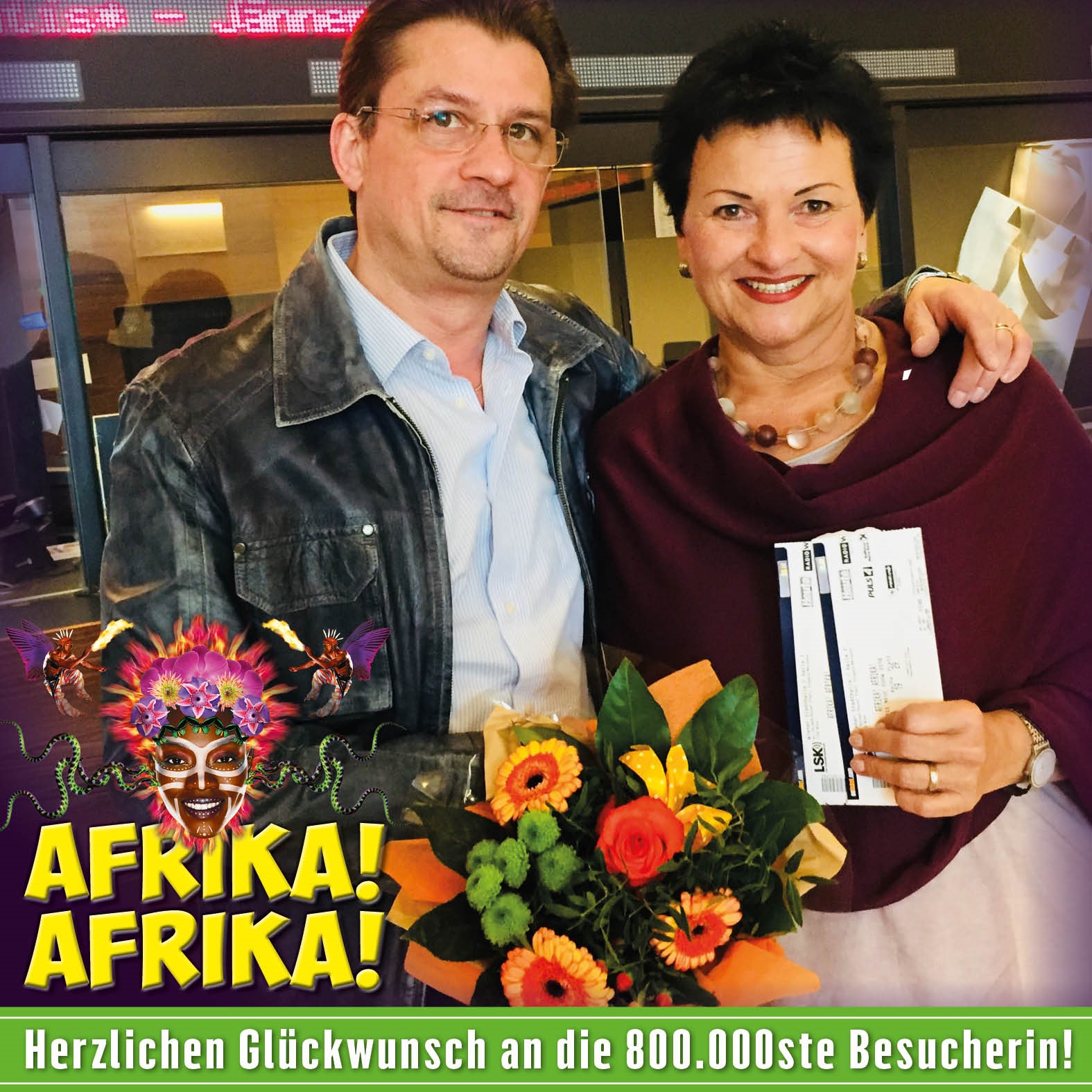 Im Rahmen des Wien-Gastspiels der aktuellen Tour war es nun endlich soweit und es konnte am 18.04.2018 die 800.000ste Besucherin der Show begrüßt werden. Diese Zahl ist ein Meilenstein und AFRIKA! AFRIKA! kann sich nun zu Recht als die erfolgreichste Family-Entertainment-Show aller Zeiten bezeichnen!