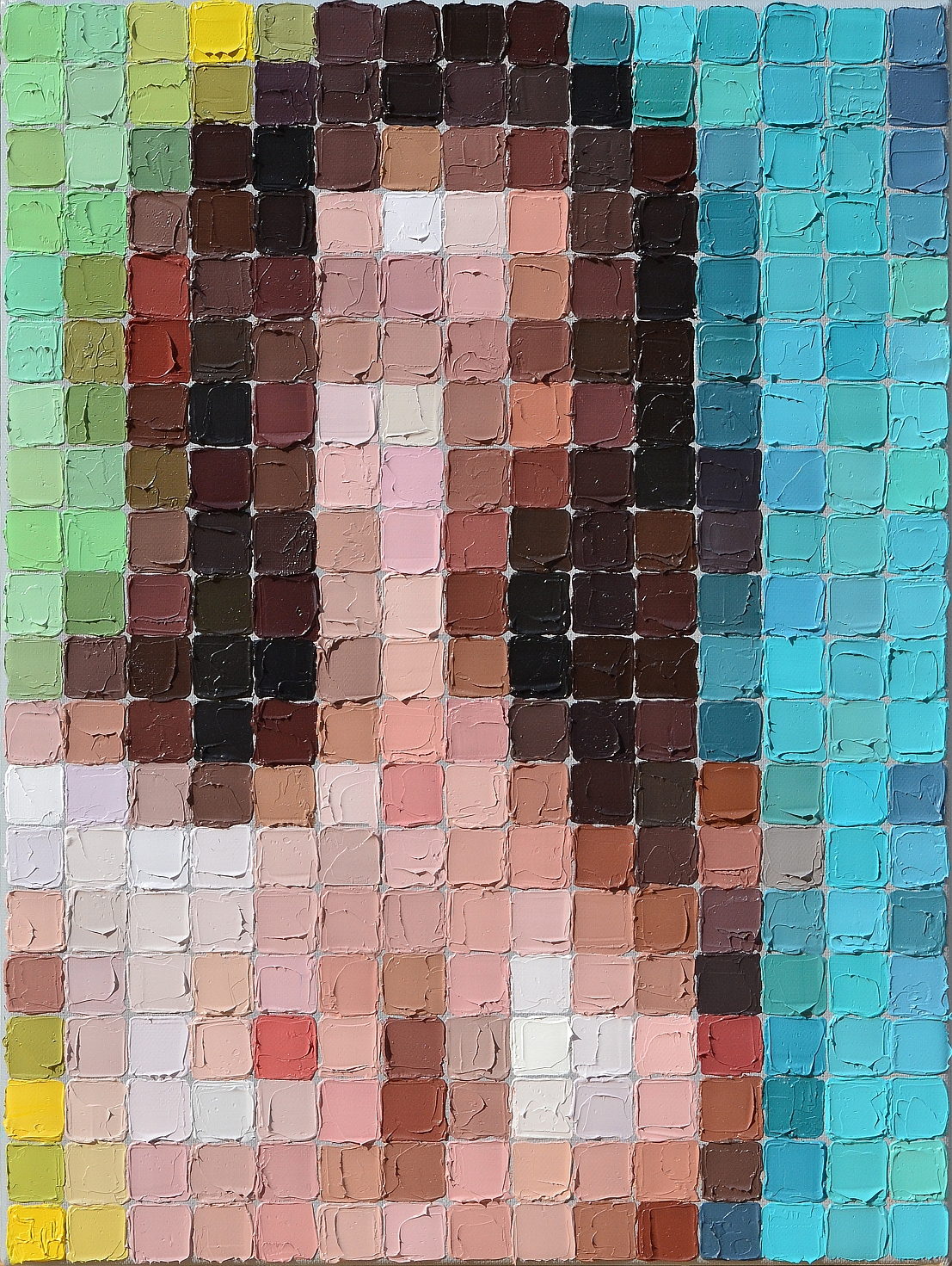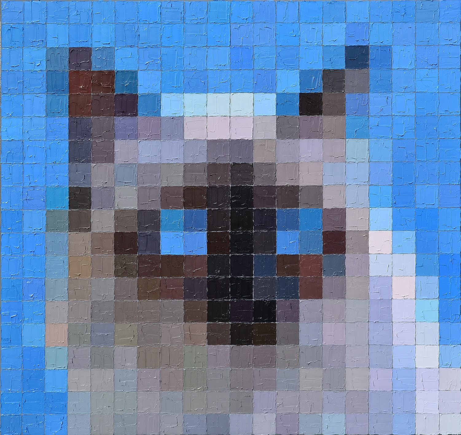 ", beschreibt Wagner seine Arbeit. Seine gespachtelten Ölbilder arbeiten mit „Bildpunkten“ - quadratische und rechteckige Pixel - wie wir sie aus der digitalen Welt kennen. Aus der Nähe betrachtet ergibt sich ein spannendes Rasterbild. Aus der Distanz gesehen entsteht eine figuratives Gemälde. So bewegt er sich mit seiner Malerei zwischen gegenständlich und geometrisch-abstrakt und lädt den Betrachter zum Verweilen und Ausprobieren ein. Aber nicht nur die eigene räumliche Nähe und Distanz verändern die Wahrnehmung. Der Einsatz moderner Medien wie der Handy-Kamera liefert eine dritte Betrachtungsebene. Denn beim Blick durch die Kamera verstärkt sich der Effekt des Zusammenziehens farbiger „Bildpunkte“ zu einem konkreten Bild.