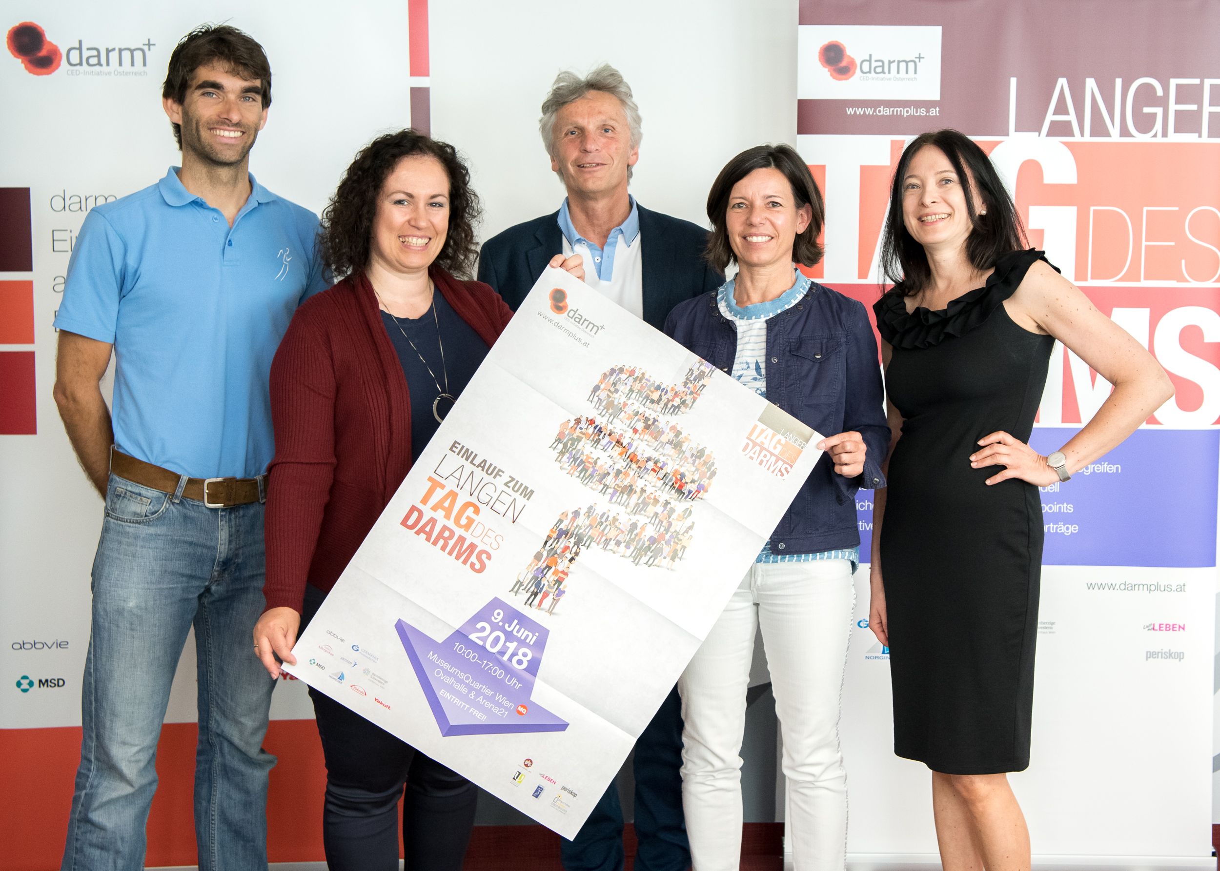 Am 9. Juni wird im Wiener MuseumsQuartier beim Langen Tag des Darms wieder die Möglichkeit geboten, sich umfassend und kostenlos zu Ernährung, Verdauung und chronisch entzündlichen Darmerkrankungen zu informieren. Im Vorfeld dazu haben heute bei einer Pressekonferenz a.o. Univ.-Prof. DI Dr. Harald VOGELSANG, Präsident von darm plus – CED Initiative Österreich, Leiter der Arbeitsgruppe CED, AKH Wien, Gaby SONNBICHLER, Geschäftsführerin der Österreichischen Krebshilfe Wien, Mag.a Marion KRONBERGER, Vizepräsidentin des BÖP, Ing. Evelyn GROSS, Vizepräsidentin und Jugend-Beauftragte der ÖMCCV und Mag. Michael KOLLER, Sportwissenschafter und Trainingstherapeut die Schwerpunkte vom Langen Tag des Darms präsentiert.