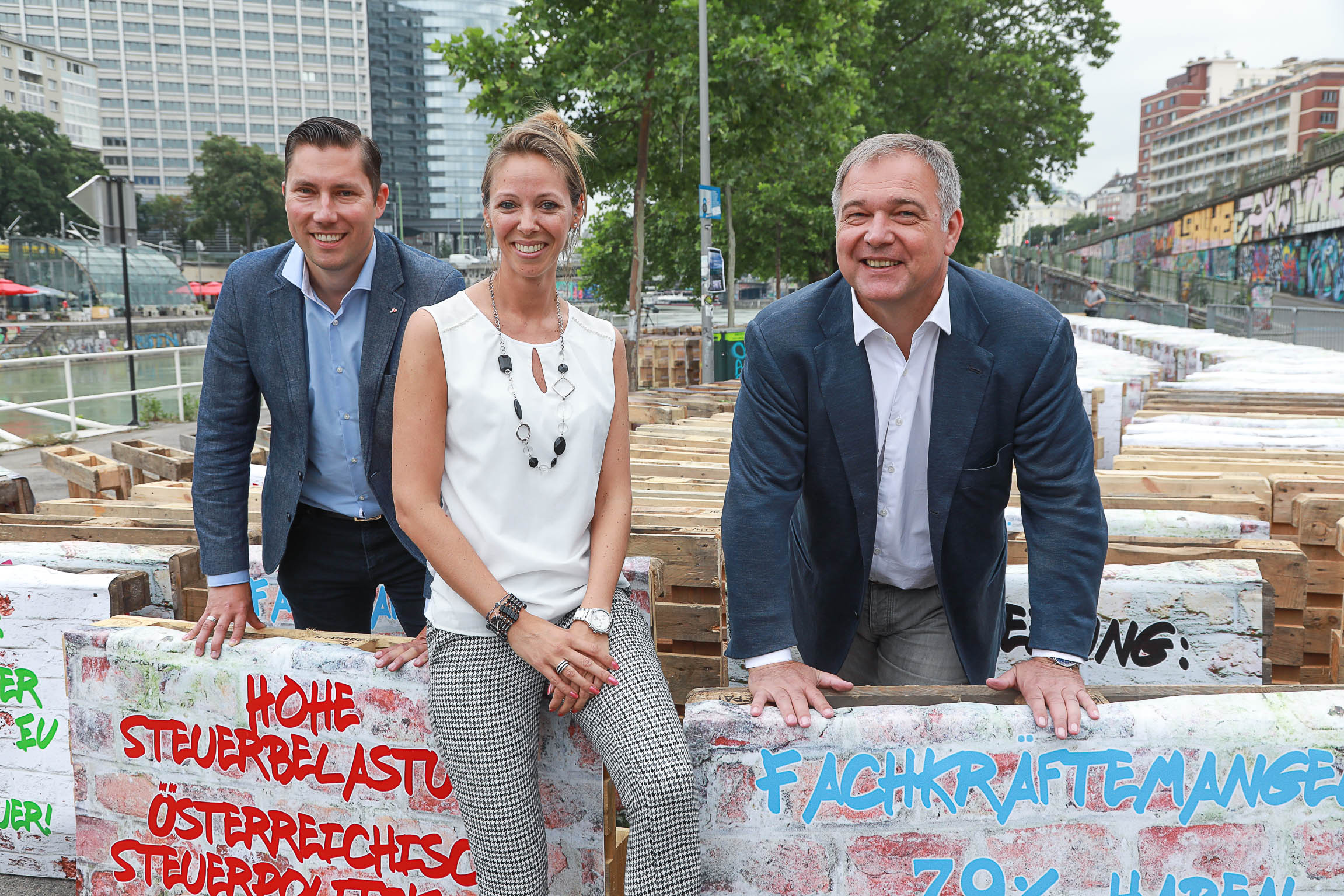 Die fünfthöchsten Lohn- und Lohnnebenkosten, lähmende Bürokratie, Abwanderung, Fachkräftemangel und mehr. Trotz Verbesserungen schneidet der Standort Wien bzw. Österreich im internationalen Vergleich eher bescheiden ab. „Die Rahmenbedingungen haben sich zwar leicht gebessert und auch die Wirtschaftslage ist aktuell positiv – doch die Zahlen und Fakten zeigen noch großen Handlungsbedarf auf. Wir müssen jetzt agieren, sonst kommen wir bald unter die Räder“, so Jürgen Tarbauer, Vorsitzender der Jungen Wirtschaft Wien. Um die Dringlichkeit zu verdeutlichen, lud die Junge Wirtschaft Wien zum „Wiener Mauerfall“ und ließ 1.000 symbolische Mauerblöcke in einer Kettenreaktion zum Einsturz bringen.