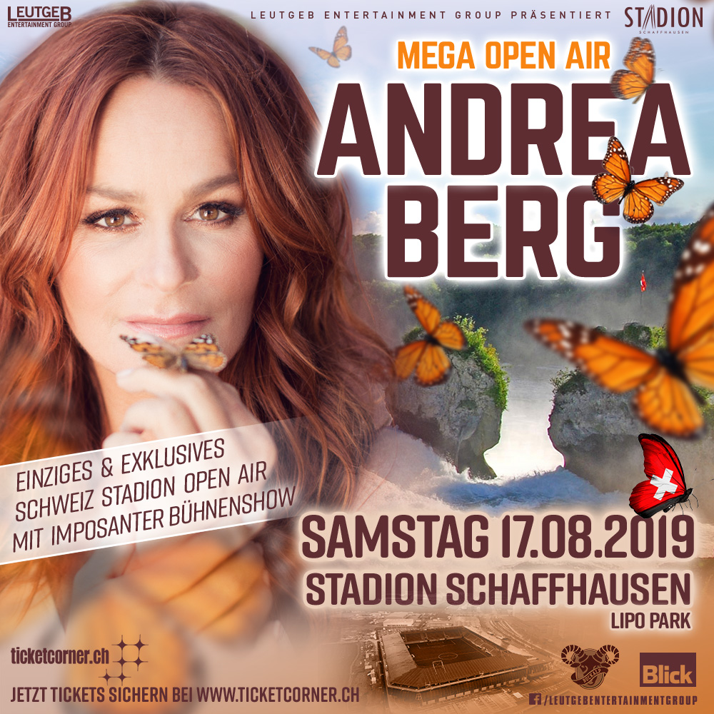 Am 17. August 2019 gastiert die SCHLAGERKÖNIGIN Andrea BERG mit Ihrem einzigen Schweiz-Konzert im STADION SCHAFFHAUSEN.