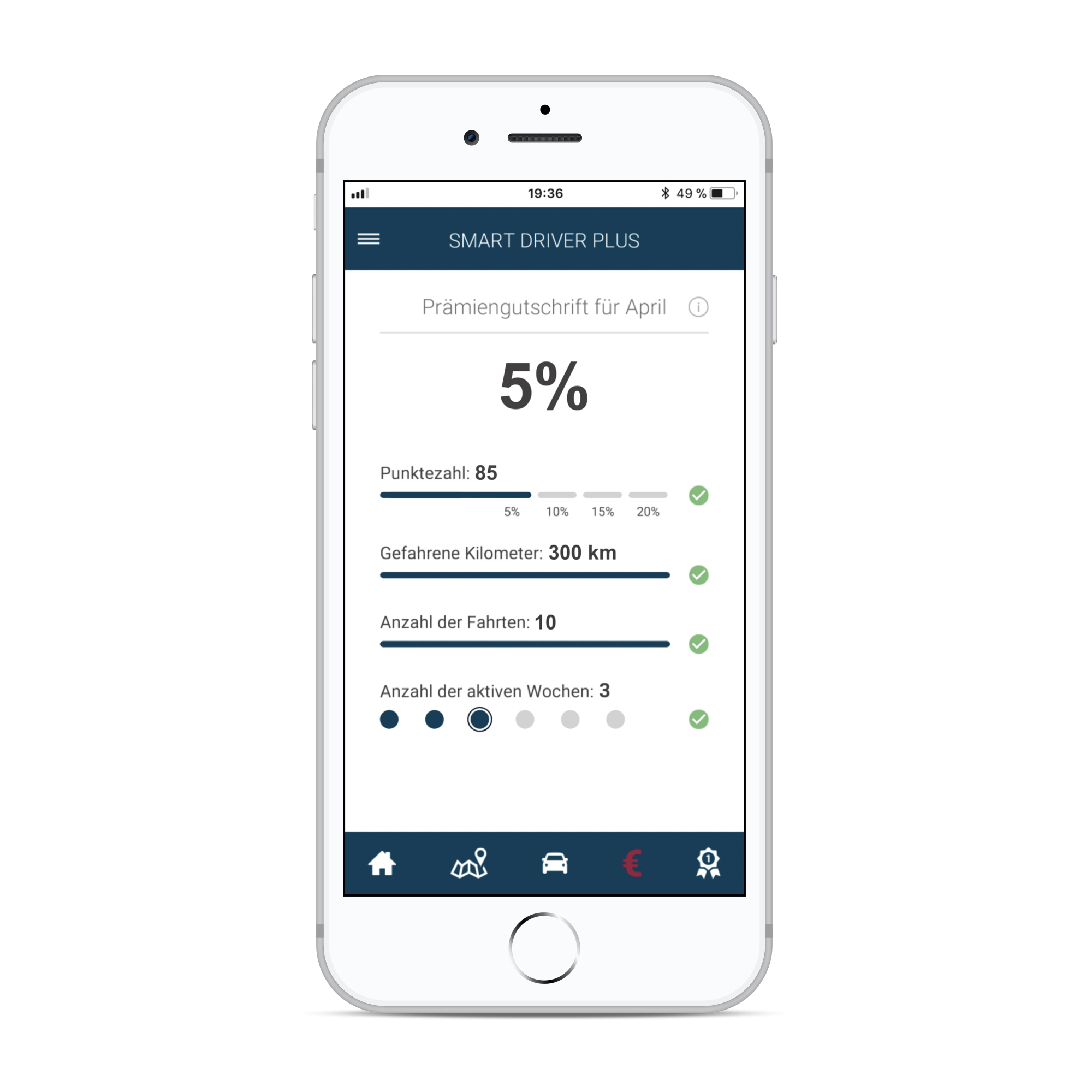 Das gilt sowohl für die App als auch für den Tarif unter 24 Jahre. Beim Tarif unter 24 Jahre wird auf Basis der Gesamtpunktezahl die monatliche Kaskoprämiengutschrift errechnet.
