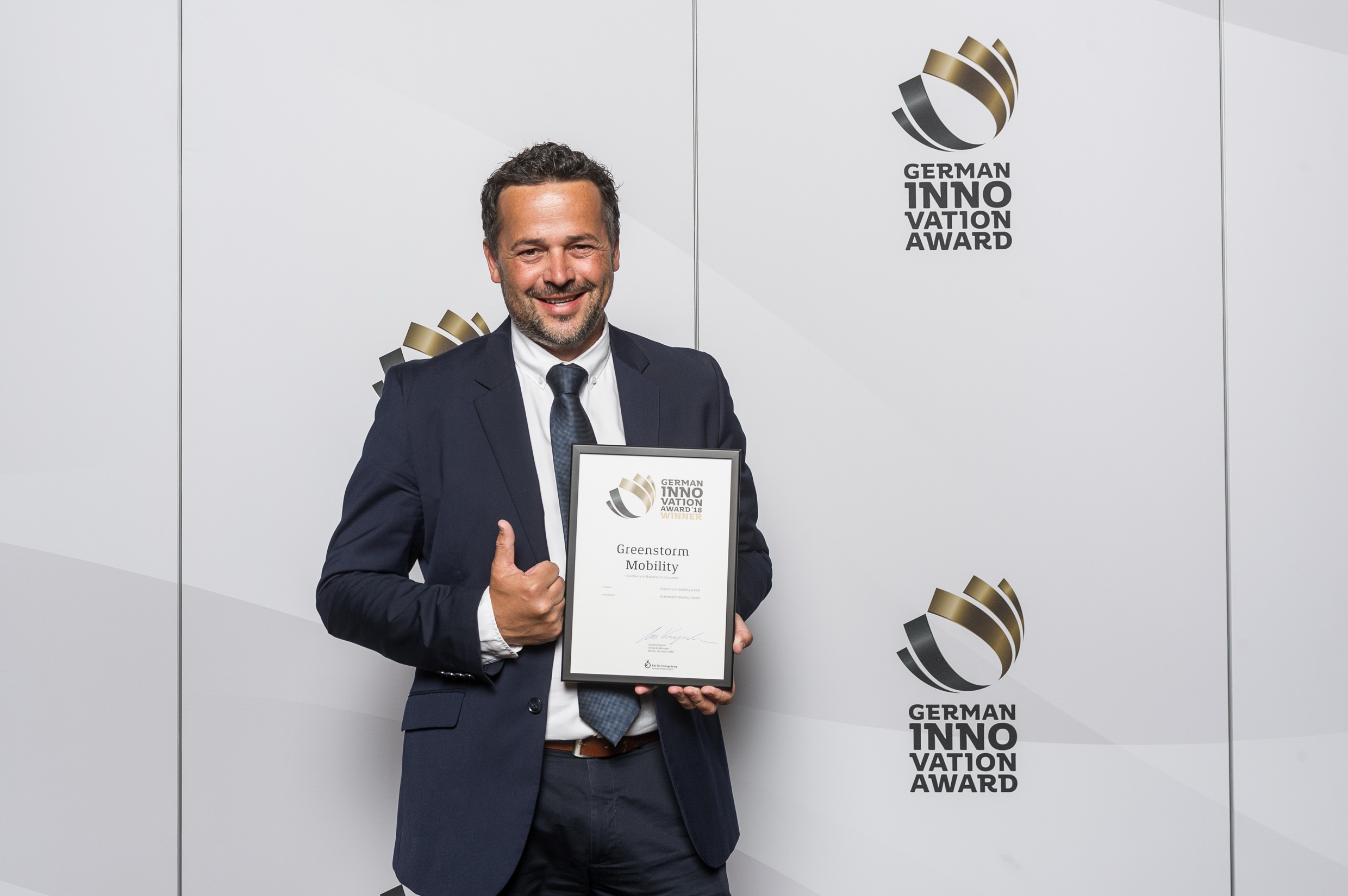 Der German Innovation Award '18 in der Kategorie Excellence in Business to Consumer geht an Greenstorm Mobility
