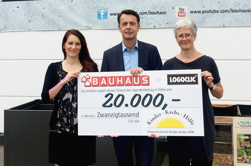 20.000 Euro für die Österreichische Kinder-Krebs-Hilfe –das ist das stolze Ergebnis der gemeinsamen Spendenaktion von BAUHAUS und der Qualitätsmarke LOGOCLIC. Auch die zweite Auflage von „Zuhause verschönern und Gutes tun“war ein voller Erfolg.