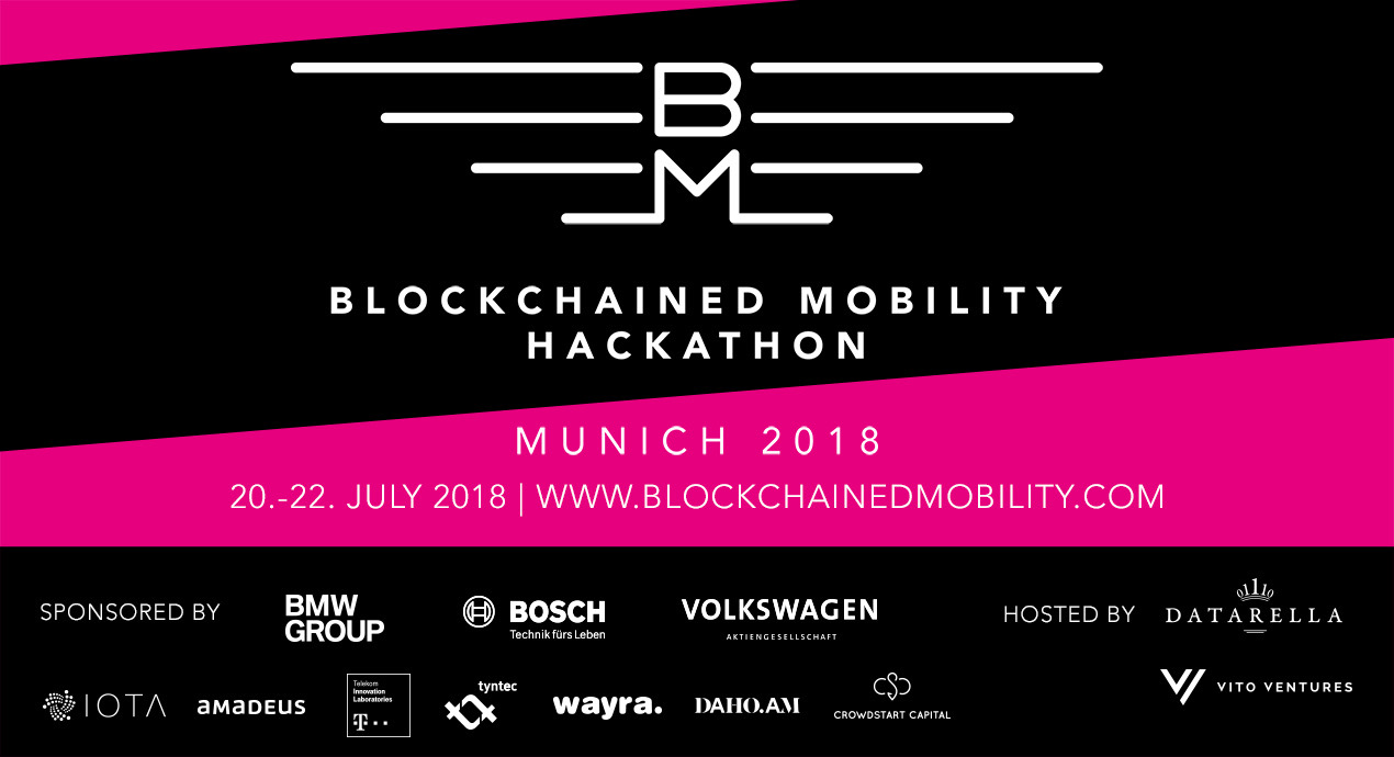 Unter dem Motto "Compete & Collaborate" treffen sich vom 20.-22. Juli erstmals bekannte Player der Mobility-Branche zu einem gemeinsamen Hackathon. Auf Einladung des Münchner Blockchain-Spezialisten Datarella (datarella.com) und des Deep Tech Investors Vito Ventures (vito.vc) suchen die Teilnehmer beim "Blockchained Mobility Hackathon" neue Lösungen für die Mobilitätsanforderungen der Zukunft. Zu den Teilnehmern gehören, neben unabhängigen Entwicklern und Experten, Teams der Hauptsponsoren BMW, Volkswagen Group, Bosch und der IOTA Foundation, sowie diverse Unternehmensteams - von Jambit über die Bayerische Versicherungskammer bis hin zu Siemens. Für interessierte Teams ist die Anmeldung noch bis 13.07. möglich.