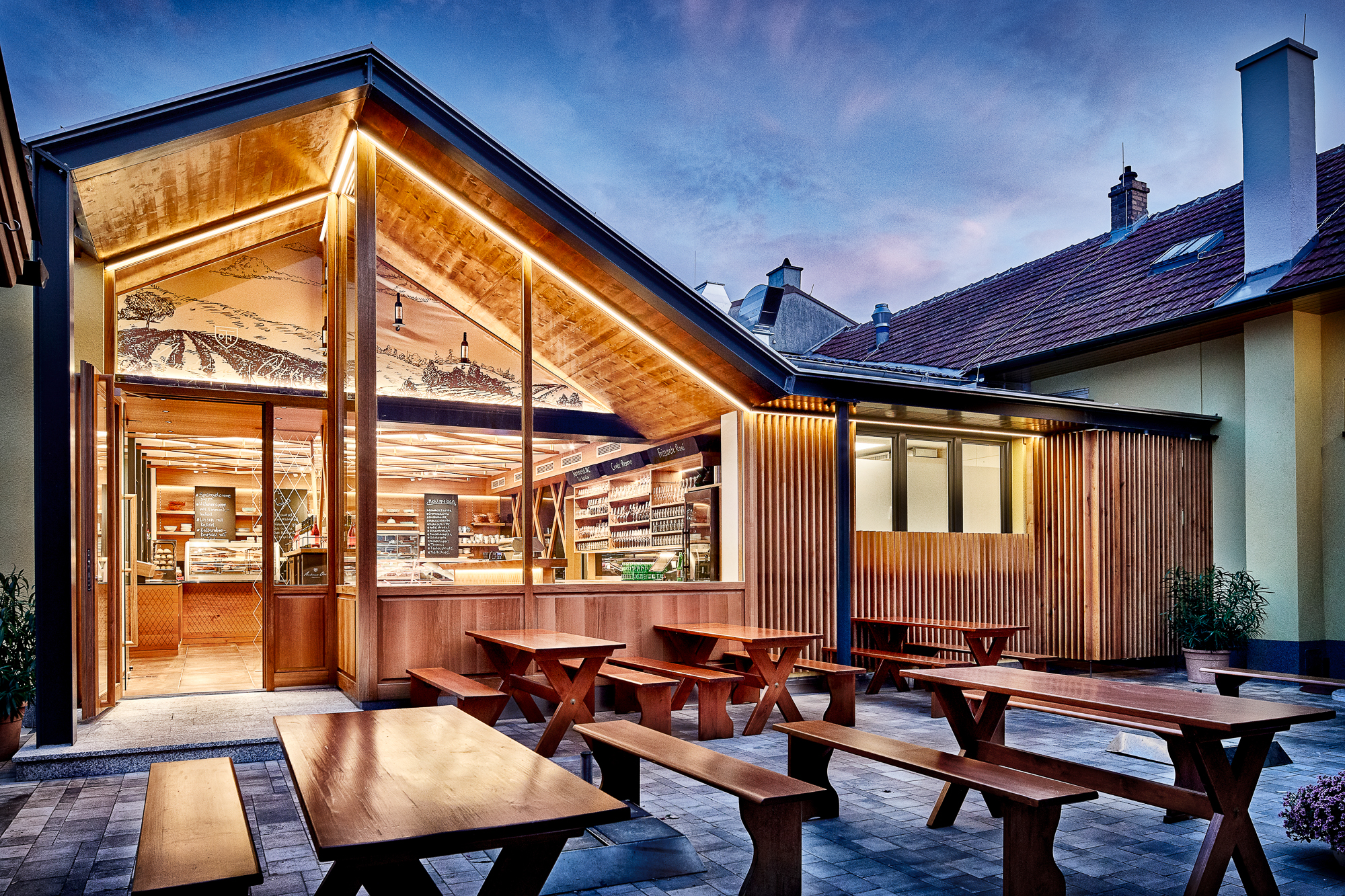 Eine symbolstarke Architektur macht den Besuch zur Zeitreise. Der Umbau des Heurigenlokals in Hagenbrunn durch Spitzbart + partners ist der erste Schritt zum neuen Markenauftritt.