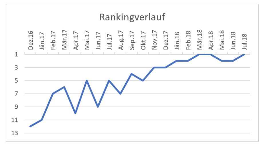 Als das Hotel Held im März 2016 mit der Arbeit begann, waren die Platzierung bei den wichtigsten Keywords gut, aber das Hotel war nicht auf der vordersten Seite zu finden, siehe Graphik Rankingverlauf.