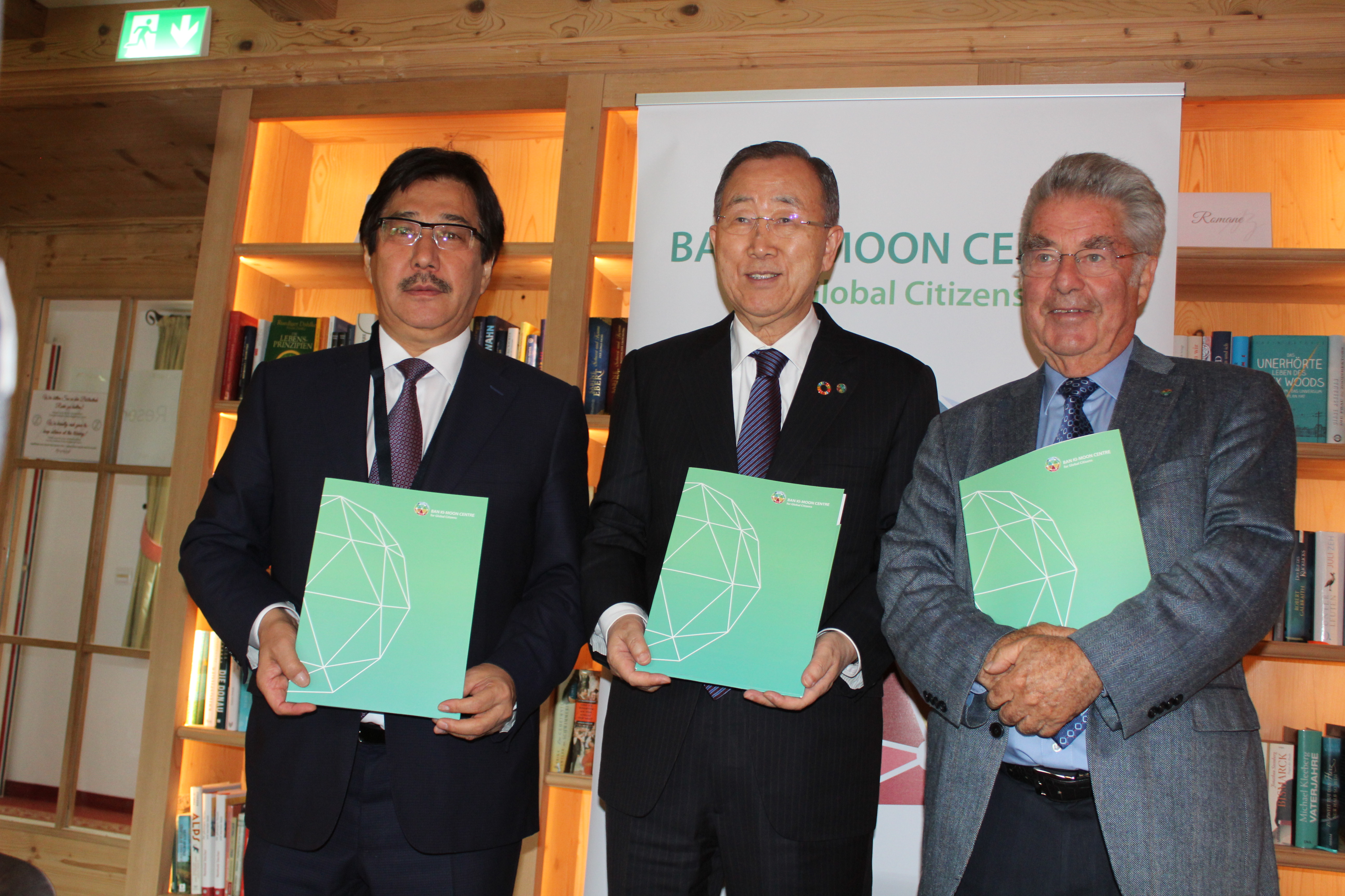 Am 26. August 2018 unterzeichnete der Dekan der kasachischen Al-Farabi-Universität (KazNU), Galimkair Mutanov, in Alpbach ein trilaterales Abkommen bezüglich der strategischen Partnerschaft zwischen dem Ban Ki-Moon Institut für nachhaltige Entwicklung (KazNU), dem Ban Ki-Moon Center für globale Bürger und dem Zentrum für nachhaltige Entwicklung an der Yonsei Universität (Republik Korea).