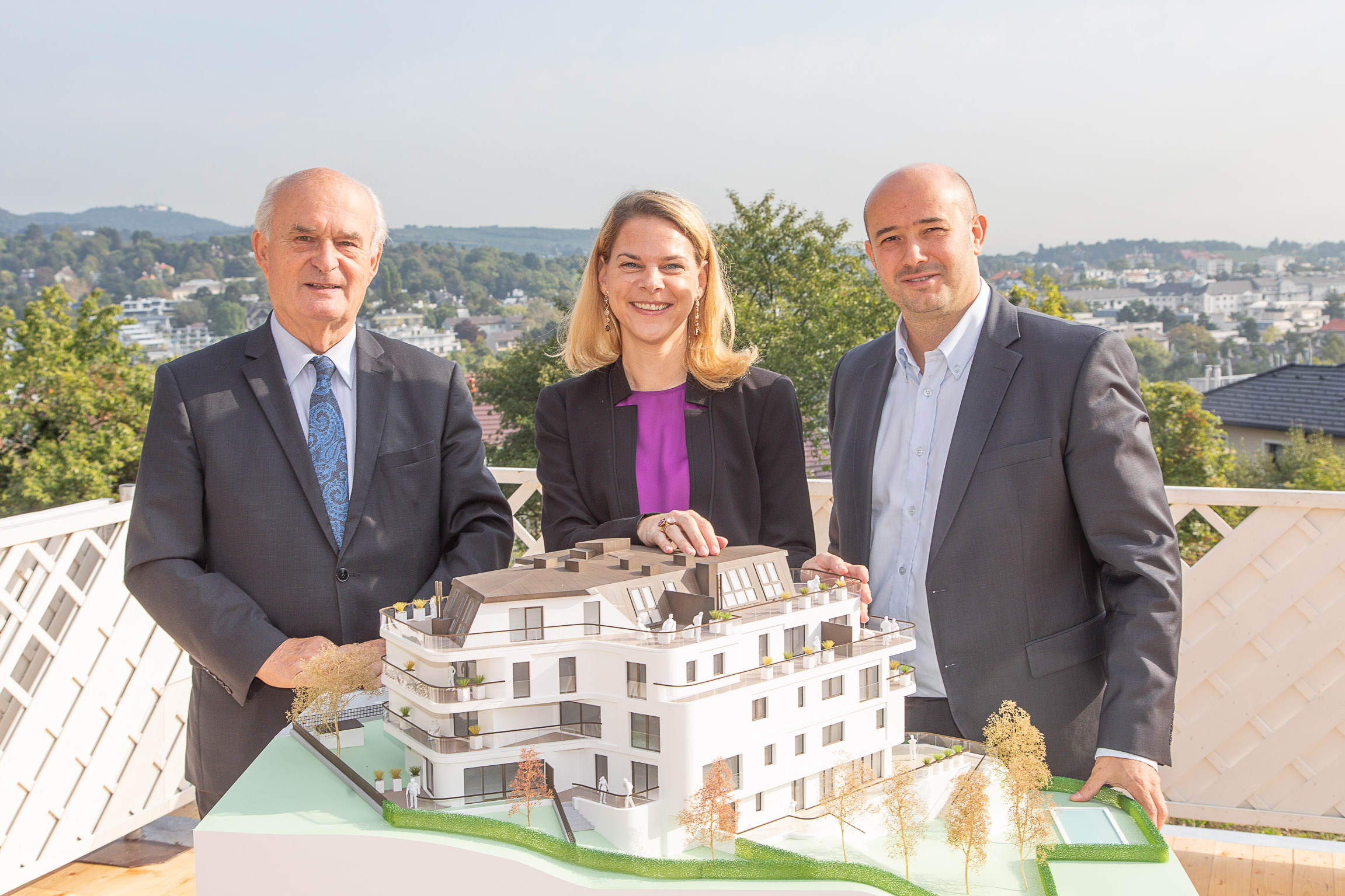 , so Johanna Seeber, Geschäftsführerin der SEESTE Bau GmbH. Bezirksvorsteher Adolf Tiller bedankte sich bei der Firma SEESTE für die Initiative zum Bau: „Der Ausblick auf Kahlenberg, Leopoldsberg und Hermannskogel zeigt einen beeindruckenden Blick über unser schönen Bezirk, den die zukünftigen Bewohner tagtäglich genießen können.“