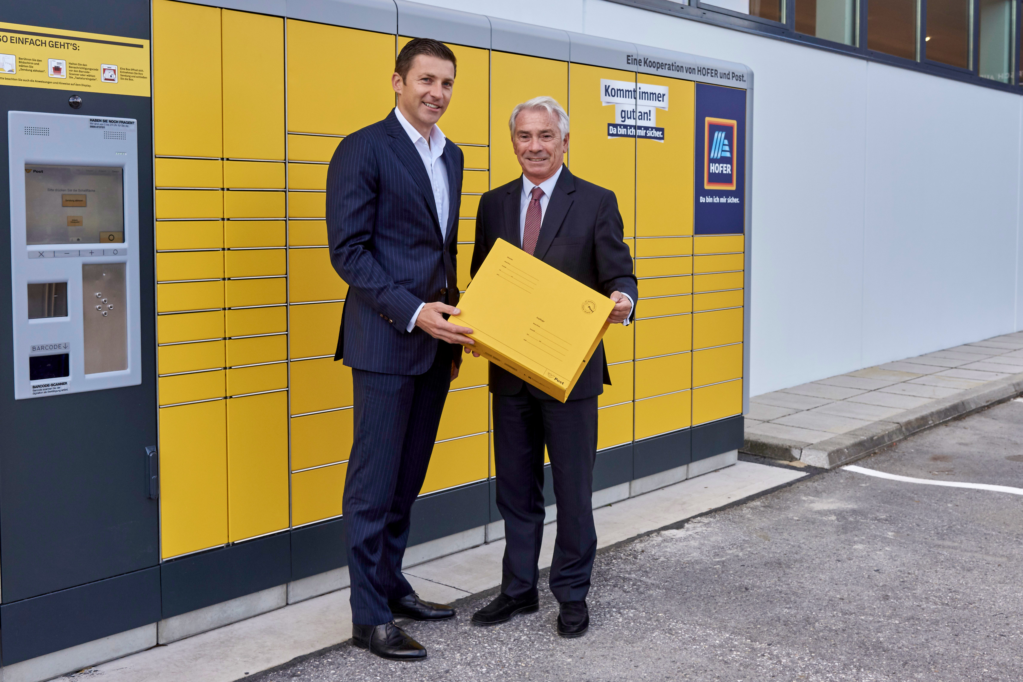Die Post baut gemeinsam mit HOFER ihr Serviceangebot aus: Ab Oktober finden Kundinnen und Kunden an 20 HOFER-Standorten, verteilt in ganz Österreich, Post-Stationen, um ihre Sendungen aufgeben und empfangen zu können. „Wird das vorerst als Pilotbetrieb gestartete Projekt gut angenommen, soll das Service österreichweit ausgerollt werden“, so DI Dr. Georg Pölzl, Generaldirektor der Österreichischen Post AG, und Dr. Günther Helm, Generaldirektor der HOFER KG, bei der gemeinsamen Inbetriebnahme der ersten Post-Station bei der HOFER-Filiale in der Linzer Straße 455, 1140 Wien.