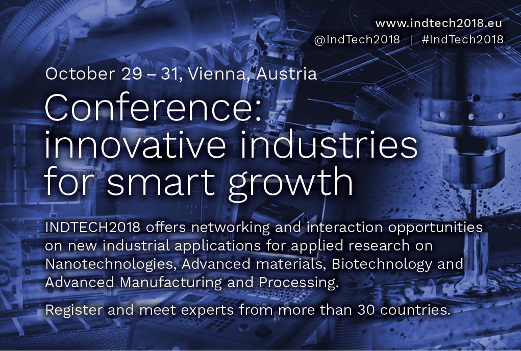 Rund 1.000 TeilnehmerInnen werden bei der „INDustrial TECHnologies 2018“ erwartet, zu der die Europäische Kommission, das Bundesministerium für Verkehr, Innovation und Technologie (bmvit) und die Österreichische Forschungsförderungsgesellschaft (FFG) von 29.-31. Oktober 2018 im Rahmen der österreichischen EU-Ratspräsidentschaft nach Wien laden.
