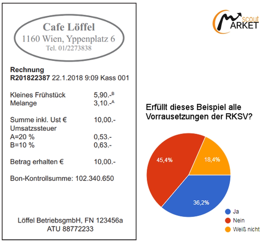 Market-Scout, die Handwerker der Marktforschung, deckten in einer Umfrage mittels präparierter Kassenbons auf, wie schlecht Österreich eineinhalb Jahr nach Inkrafttreten der RKSV informiert ist.
