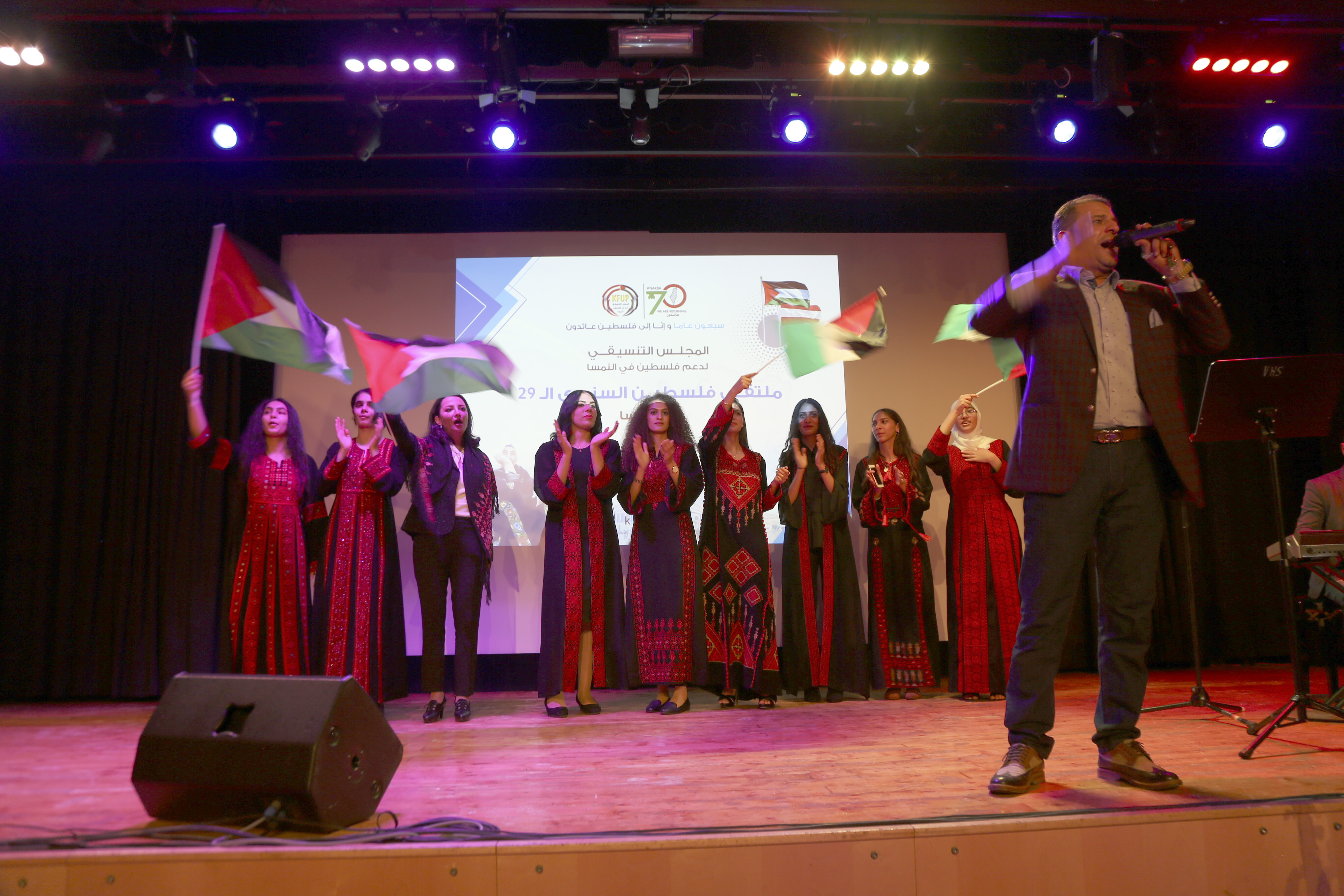 Die Kultur und Tradition Palästinas stand auch auf dem Programm. Ein Sänger sang zwischen den Vorträgen traditionelle palästinische Volkslieder. Dabei wehte das Publikum mit der palästinischen Fahne und sang sogar teilweise mit. Außerdem trat eine „Dabka[1]“- Tanzgruppe auf. Im Eintrittsraum der Halle wurden köstliche Speisen aus dem Orient verkauft. Viele Frauen trugen die traditionelle palästinensische Kleidung, das rot-schwarze so genannte „Toub“.