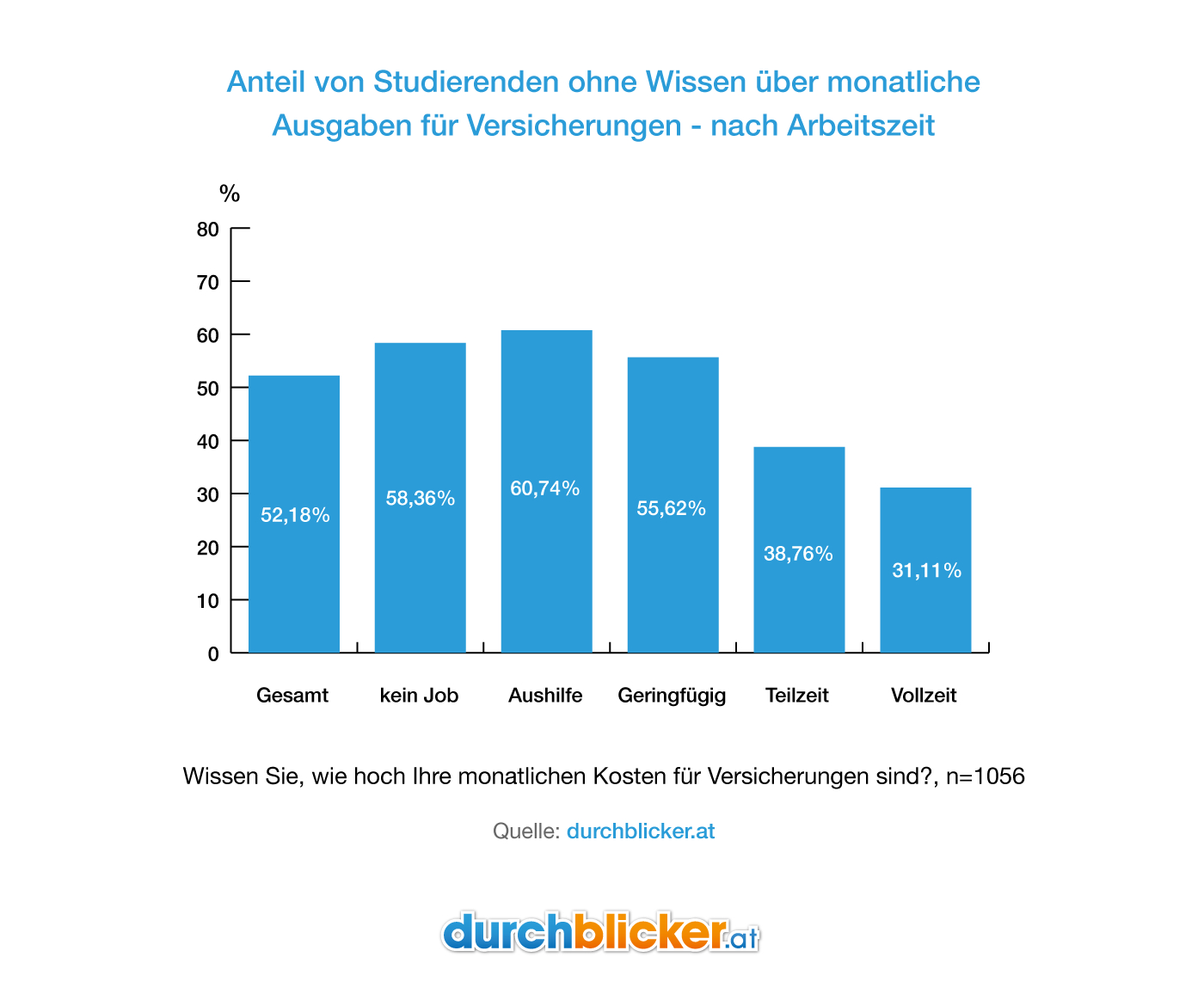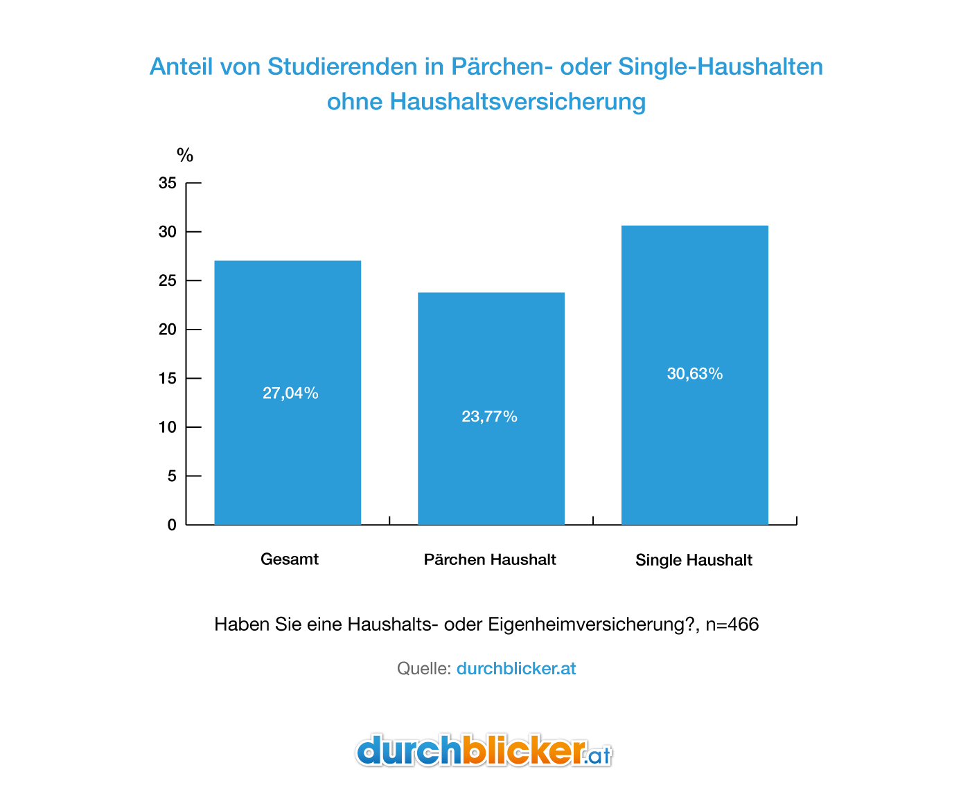 am 12. Oktober 2018 – Pünktlich zu Unibeginn wagen viele Studierende den ersten Schritt in Richtung Erwachsenwerden und ziehen in eine eigene Wohnung oder Wohngemeinschaft. Dass Studierende in puncto (Haushalts-) Versicherung jedoch nicht ausreichend informiert sind, zeigt eine von Österreichs größtem Tarifvergleichsportal durchblicker.at und der Studentenplattform iamstudent.at durchgeführte Onlinebefragung. Befragt wurden dabei 1.056 in Österreich lebende Studentinnen und Studenten. Dabei zeigte sich, dass nur knapp jeder zweite Studierende darüber Bescheid weiß, wie hoch seine monatliche Versicherungsprämie ist. Von jenen 466 Studentinnen und Studenten, die in Single- oder Pärchen-Haushalten leben, ist rund ein Drittel überhaupt nicht haushaltsversichert. Besonders hoch ist die Hemmschwelle, Versicherungsanbieter zu wechseln, denn rund die Hälfte jener Bewohner von Single- oder Pärchen-Haushalten hat damit noch keine Erfahrung.