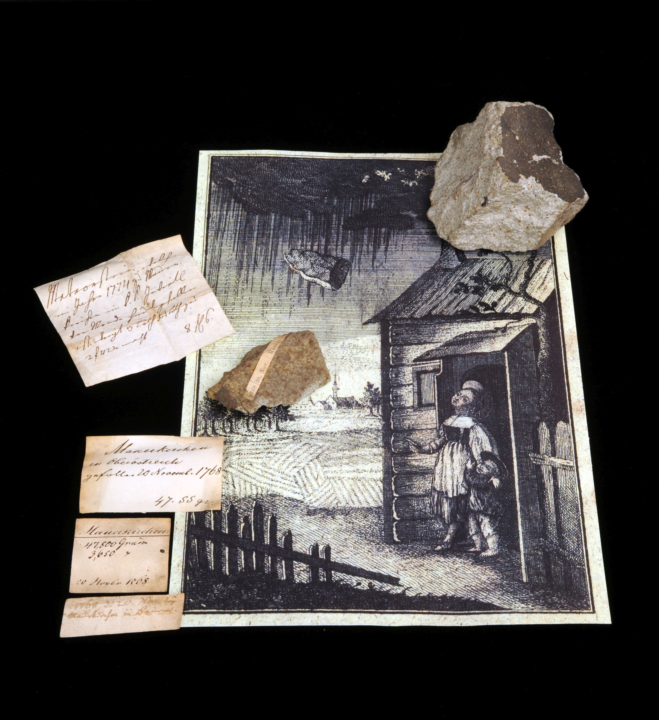 Am 20. November 1768 fiel in Mauerkirchen, heute Oberösterreich, vormals Bayern, kurz vor Sonnenuntergang ein Stein vom Himmel, begleitet von einer Rauchwolke und einem Knall. Der Steinmeteorit, der damals auf die Erde niederging, ist der größte Meteorit, der bis jetzt auf dem heutigen österreichischen Staatsgebiet gefunden wurde.