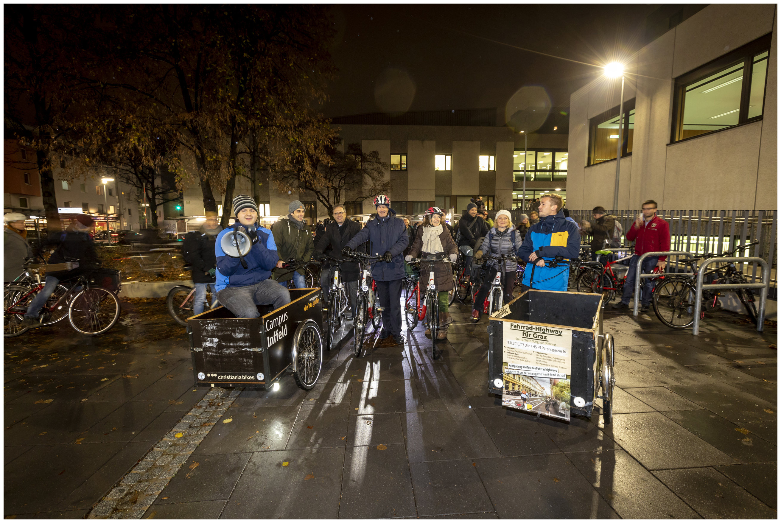 Am Montag, dem 19.11.2018, haben die ÖH Uni Graz und die HTU Graz gemeinsam zur Veranstaltung “Fahrrad-Highway für Graz - der sichere Weg zur Bildung” eingeladen. Nach einer Einführung durch die beiden Rektorate wurden Studierenden, Bediensteten und Interessenten ein Einblick über die Geschichte der Radverbindung zwischen Mandellstraße und Petersgasse gegeben. Anschließend wurde berichtet, was sich im Verkehr ändern wird und wie der Bereich schöner und einladender gestaltet werden kann.