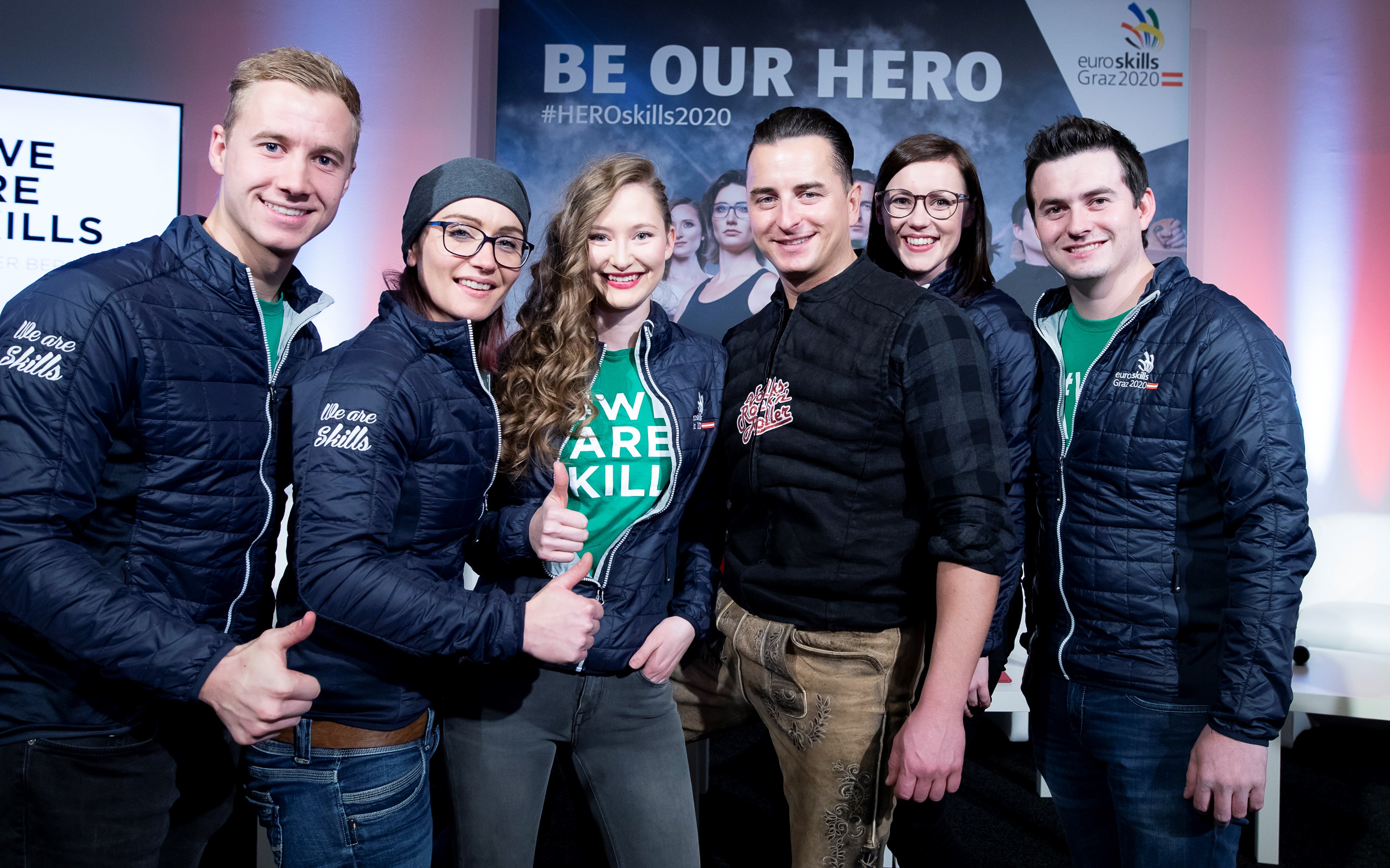 Die ersten Termine haben die Heroes bereits absolviert. Gemeinsam drückten sie heuer bei EuroSkills in Budapest dem Team Austria in den Wettkämpfen die Daumen, beim Dreh des neuen Imagefilms für EuroSkills 2020 erkundeten sie bereits die Grazer Hauptstadt. In Zukunft wird man sie bei offiziellen Terminen ebenso antreffen wie in Berufsschulen und Ausbildungsstätten, wo der „Heldennachwuchs“ ihre Vorbilder um Rat und Erfahrungsberichte bitten kann. Und auch in der digitalen Welt sind sie als Botschafter am Start. Wer den Heroes auf der neuen „WE ARE SKILLS“-App, auf Facebook oder Instagram folgt, verpasst garantiert keine der spannenden Neuigkeiten rund um EuroSkills 2020.
