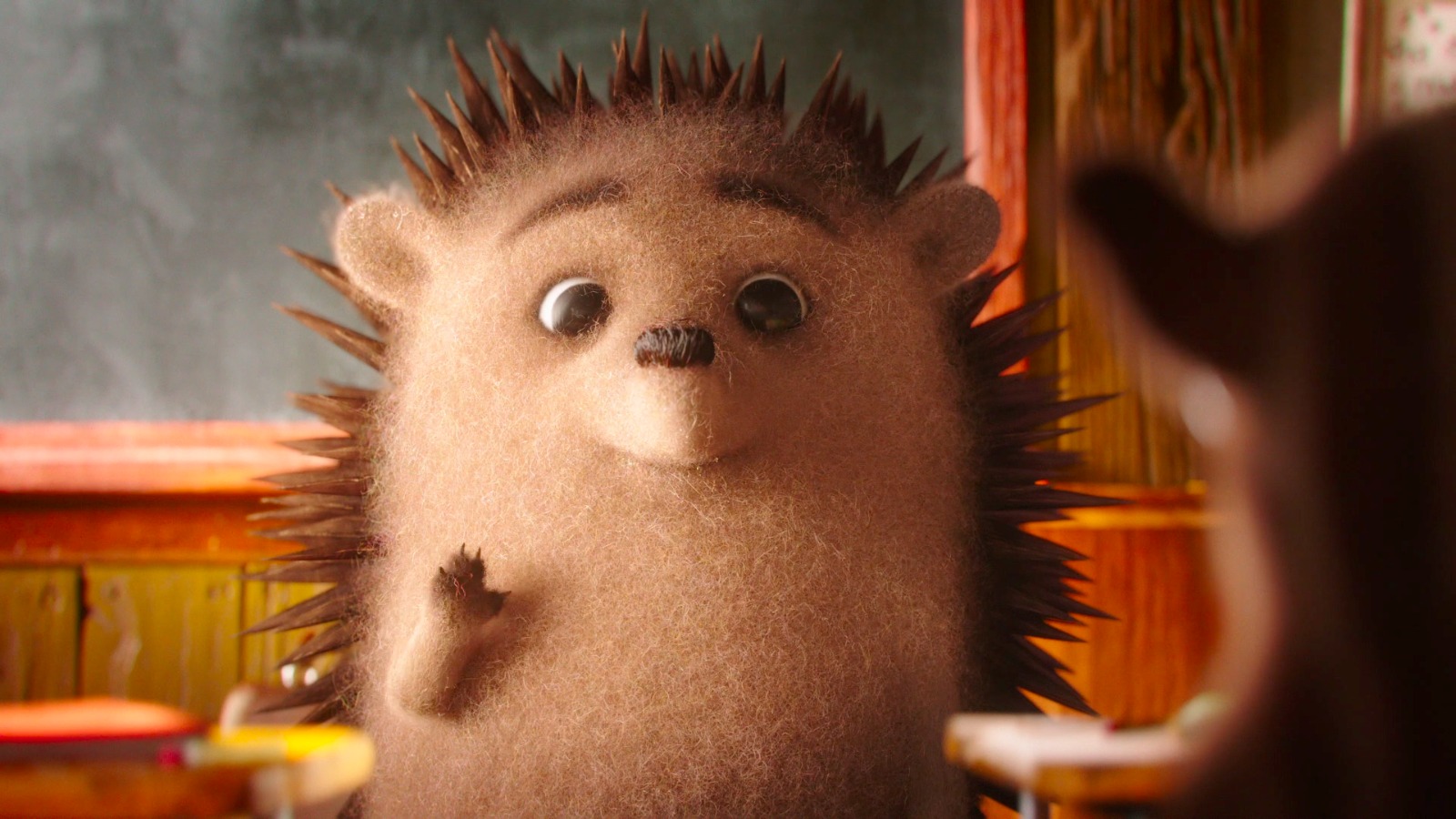 Oft hat man es nicht einfach, wenn man der „Neue“ in einer Gruppe ist. So wie der kleine Igel-Darsteller Henry Hedgehog. Schon sein erster Tag in der Waldschule gestaltet sich schwierig und obwohl er seine Mitschüler gerne besser kennenlernen würde, steht ihm immer etwas im Wege: seine Stacheln. Immer wieder versucht sich der Igel einzubringen und möchte mit den anderen Tieren spielen. Doch seine Klassenkollegen haben Angst, sich an seinen Stacheln zu verletzten. Die Zeit vergeht, der Weihnachtstag ist angebrochen und Henry bemerkt, dass die anderen über ihn tuscheln und kichern. Als der Igel traurig die Schule verlässt, überraschen seine Mitschüler ihn und haben ein gemeinsames Geschenk. Das, was für Henry zuerst wie ein Scherz scheint, entpuppt sich dann zu dem Geschenk, das er sich so sehnlichst gewünscht hat: Nähe.