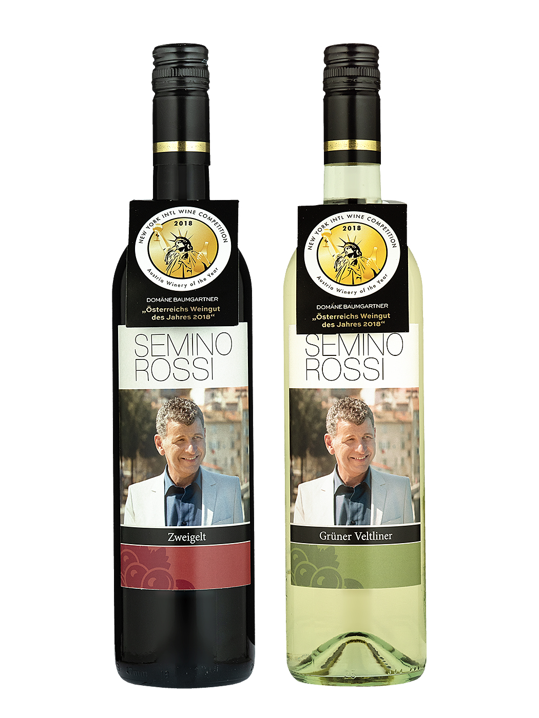 Semino Rossi zählt zur Elite der Schlagerstars und wurde mit zahlreichen Preisen sowie Goldenen und Platinschallplatten ausgezeichnet. Der für neue Ideen immer offene und kreative Künstler hat nun erstmals mit der bekannten Jungwinzerin Katharina „KTI“ Baumgartner vom größten österreichischen Weingut, der Domäne Baumgartner in Untermarkersdorf im Weinviertel, zwei ausgesuchte Weine produziert. Bei der Lagerung auf der Feinhefe im Inneren der Tanks wurden die beiden Weine nach einem speziellen Verfahren mit einem Medley von Semino Rossis Liedern beschallt.