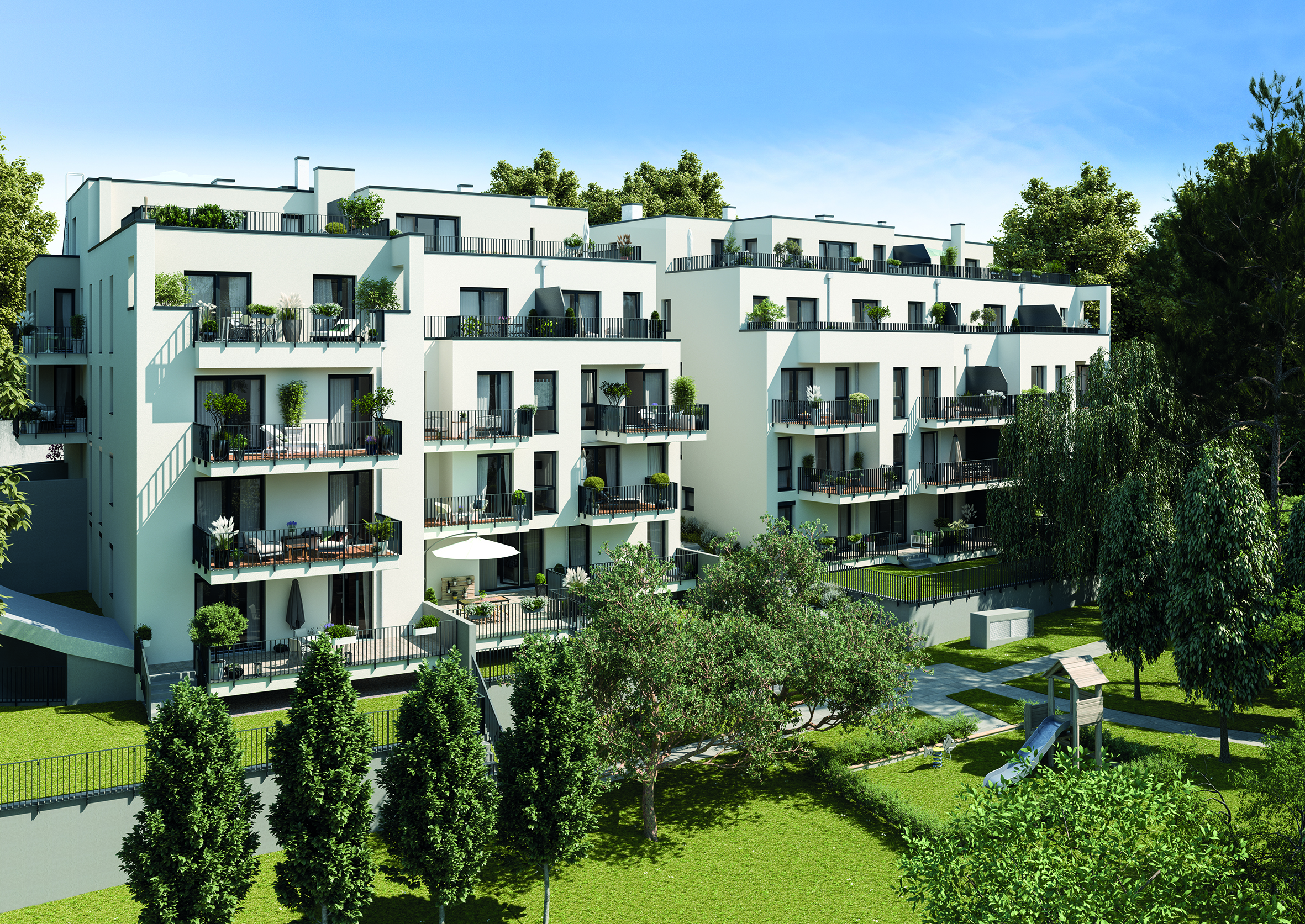Die insgesamt 34 hochwertigen Eigentumswohnungen mit 2 bis 5 Zimmern und 59 bis 114 m² Wohnfläche überzeugen Käufer sowie Interessenten durch das idyllische Wohnambiente mit unmittelbarer Nähe zum Wienerwald sowie zum Zentrum von Penzing. Darüber hinaus ist die Wiener Innenstadt schnell und einfach erreichbar. Das Wohnensemble punktet mit detailreichen Grünanlagen inklusive Altbaumbestand auf dem weitläufig angelegten Parkgrundstück. Des Weiteren laden die Eigengärten im Süden des Grundstücks zum Verweilen ein.